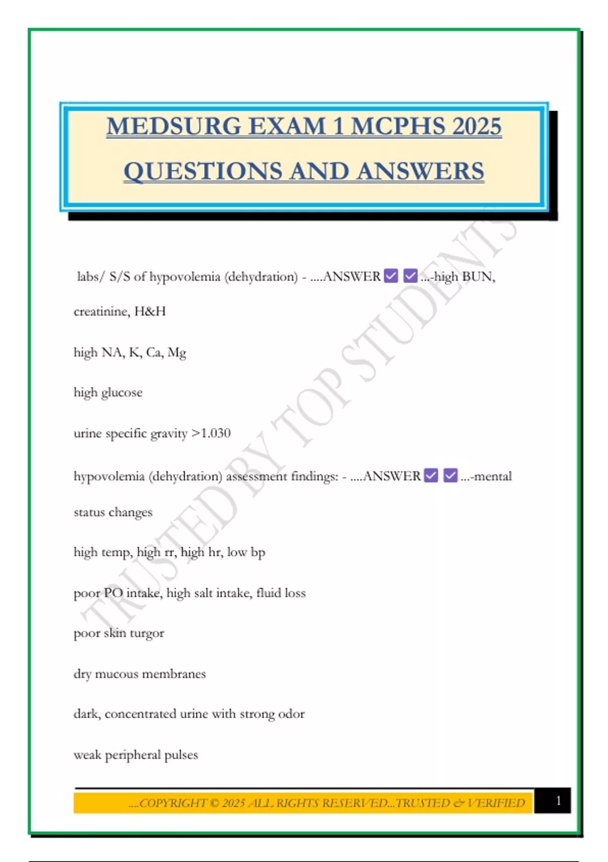 MEDSURG EXAM 1 MCPHS 2025 QUESTIONS AND ANSWERS