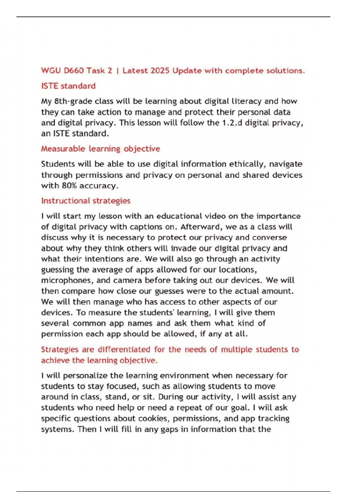 WGU D660 Task 2 | Latest 2025 Update with complete solutions.