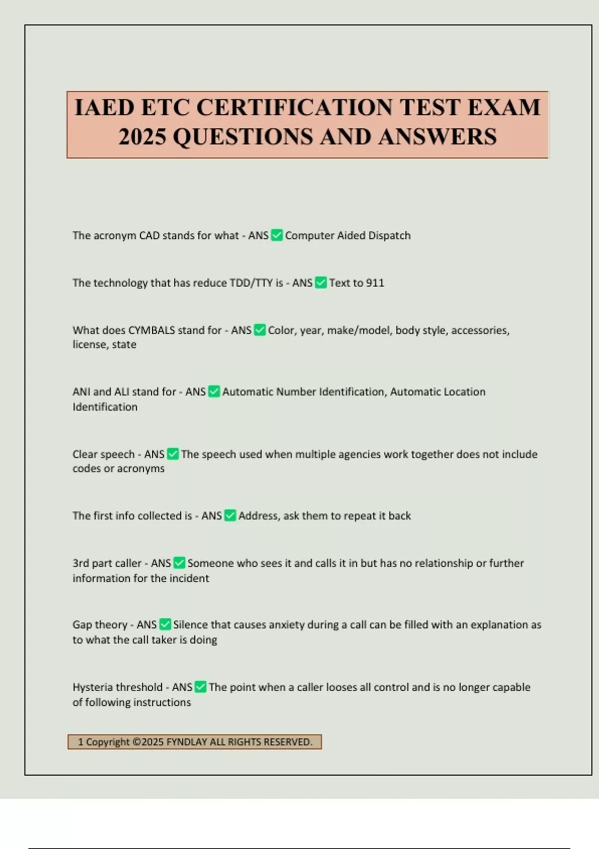 IAED ETC CERTIFICATION TEST EXAM 2025 QUESTIONS AND ANSWERS