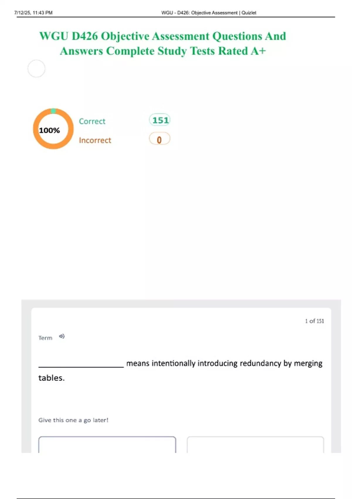 , 7/12/25, 11:43 PM WGU - D426: Objective Assessment | Quizlet
