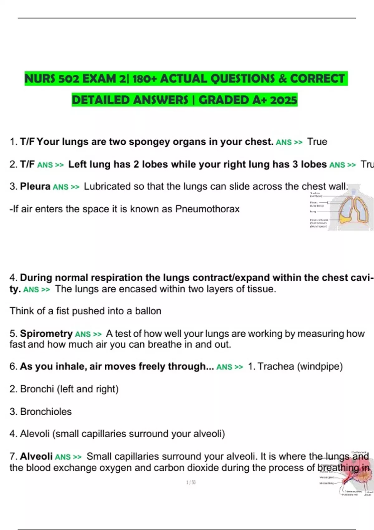 1. T/F Your lungs are two spongey organs in your chest. ANS >> True