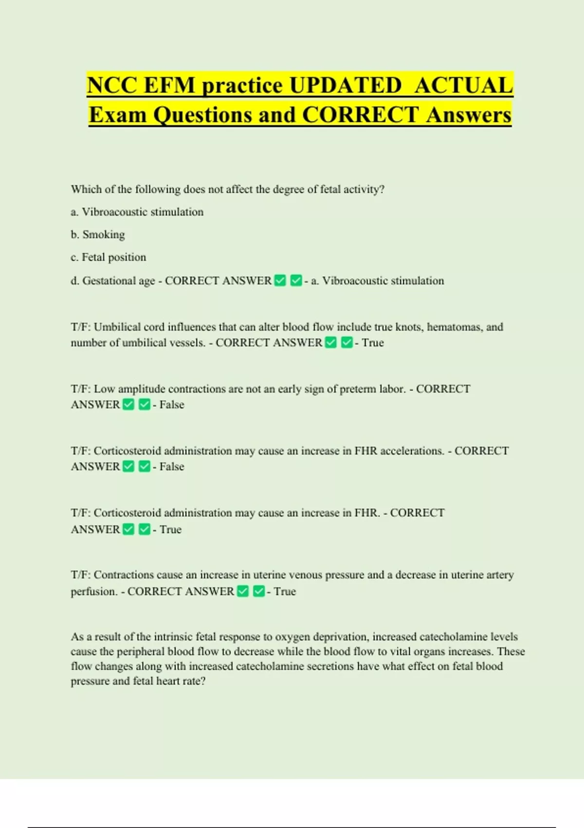 d. Gestational age - CORRECT ANSWER - a. Vibroacoustic stimulation