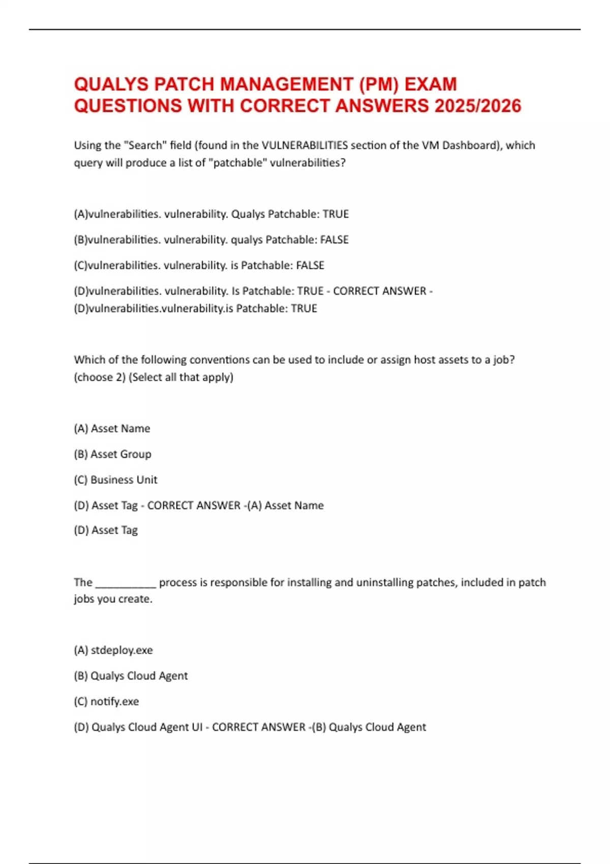 QUALYS PATCH MANAGEMENT (PM) EXAM