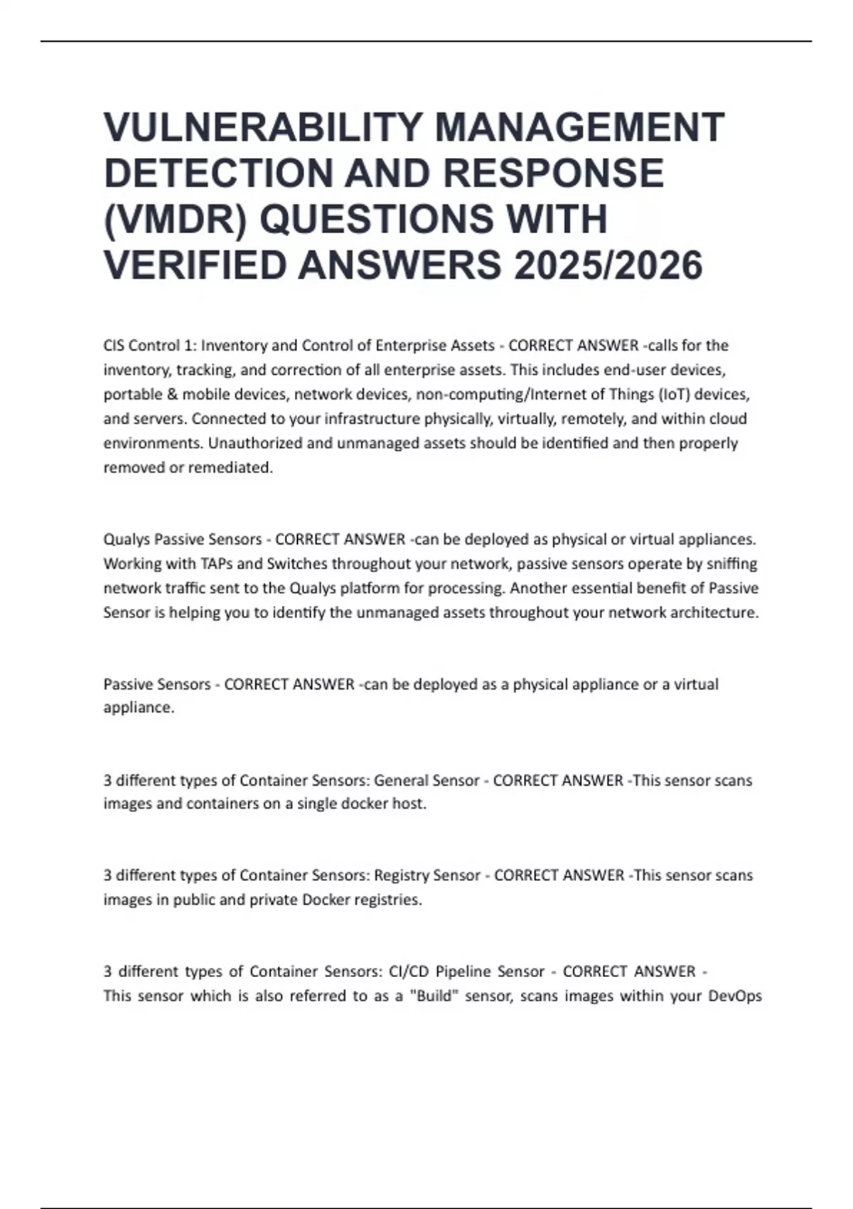 VULNERABILITY MANAGEMENT DETECTION AND RESPONSE (VMDR) QUESTIONS WITH VERIFIED ANSWERS 2025/2026