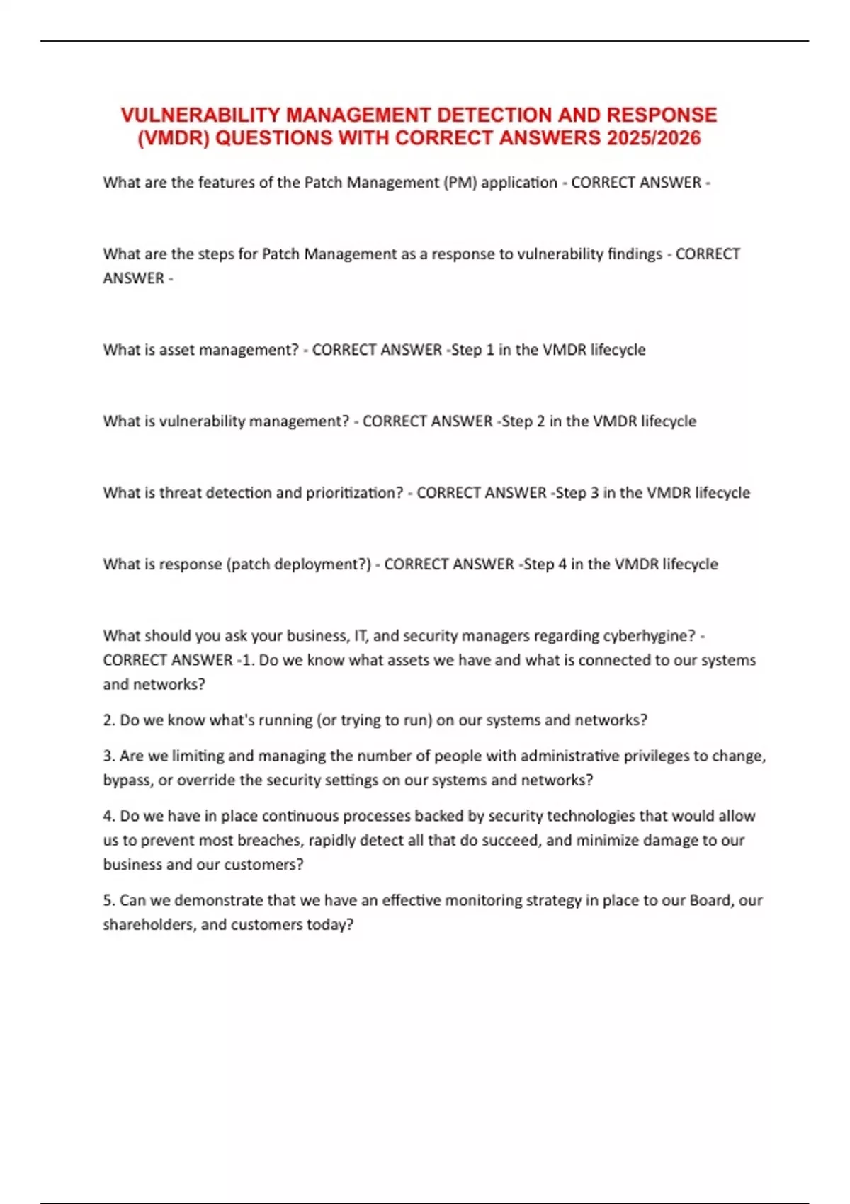 (VMDR) QUESTIONS WITH CORRECT ANSWERS 2025/2026