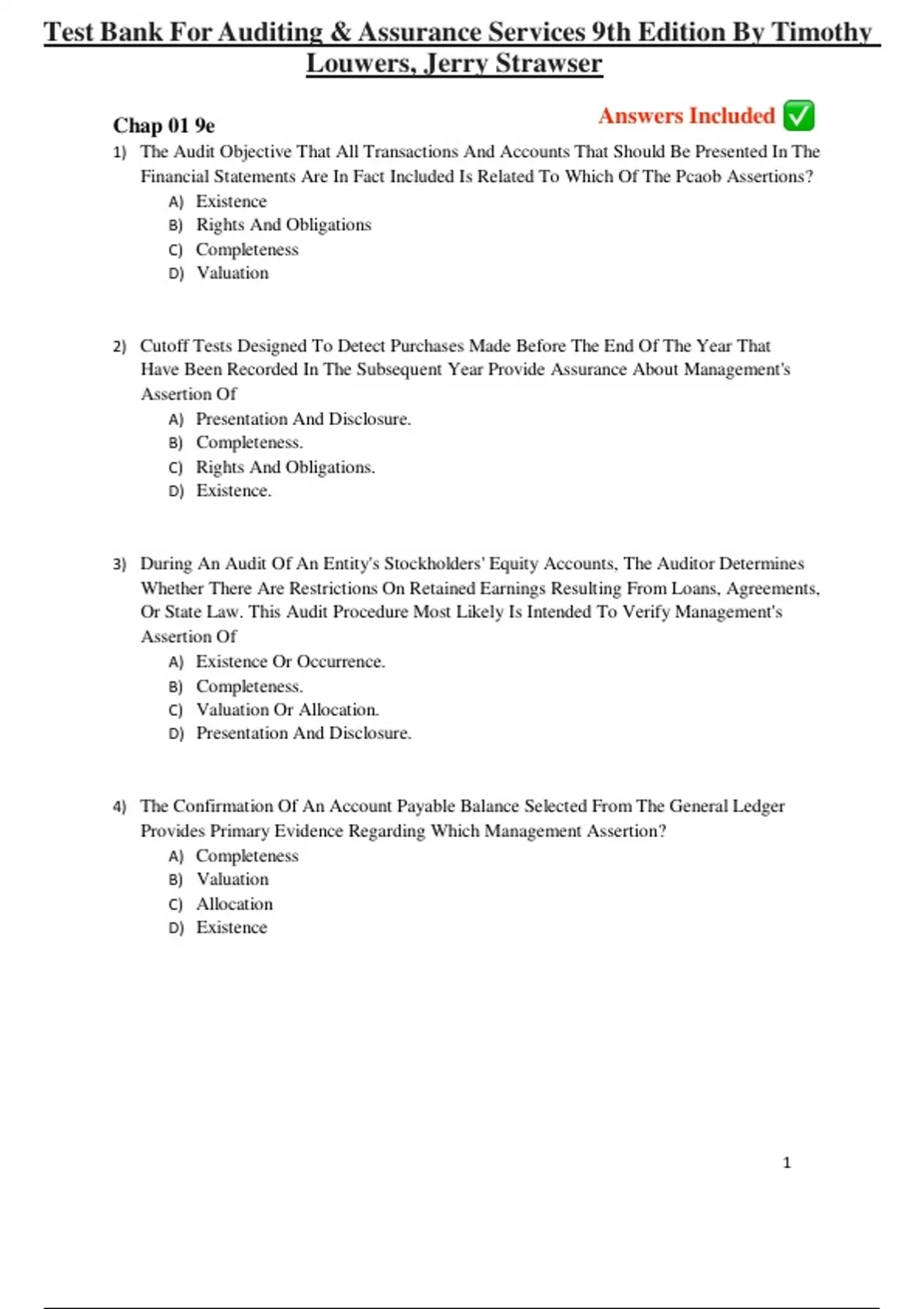 Test Bank For Auditing & Assurance Services 9th Edition By Timothy