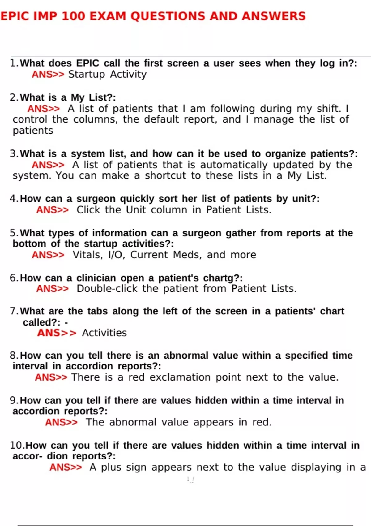 EPIC IMP 100 Exam Questions and Answers 2022
