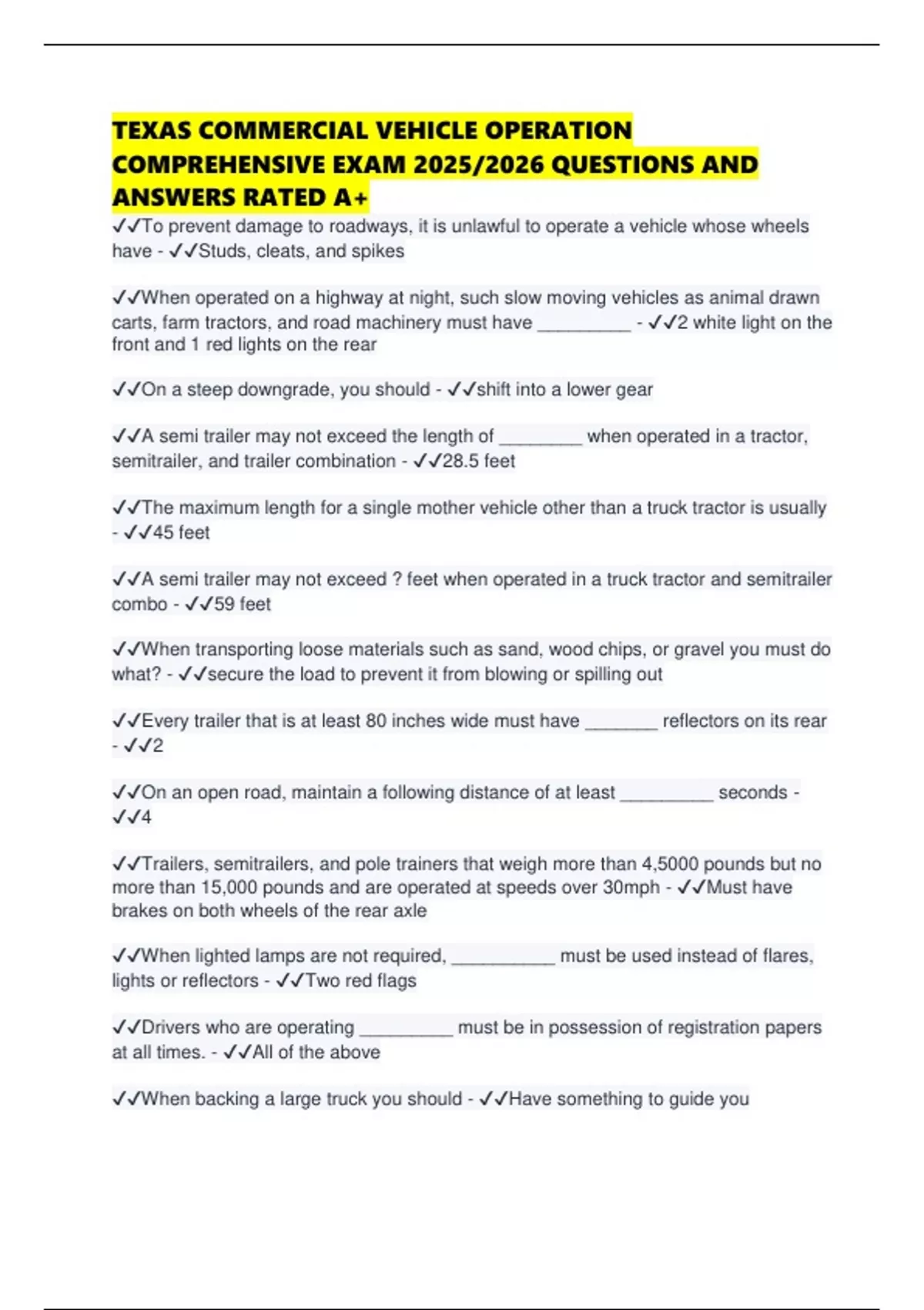 ✔✔To prevent damage to roadways, it is unlawful to operate a vehicle whose wheels