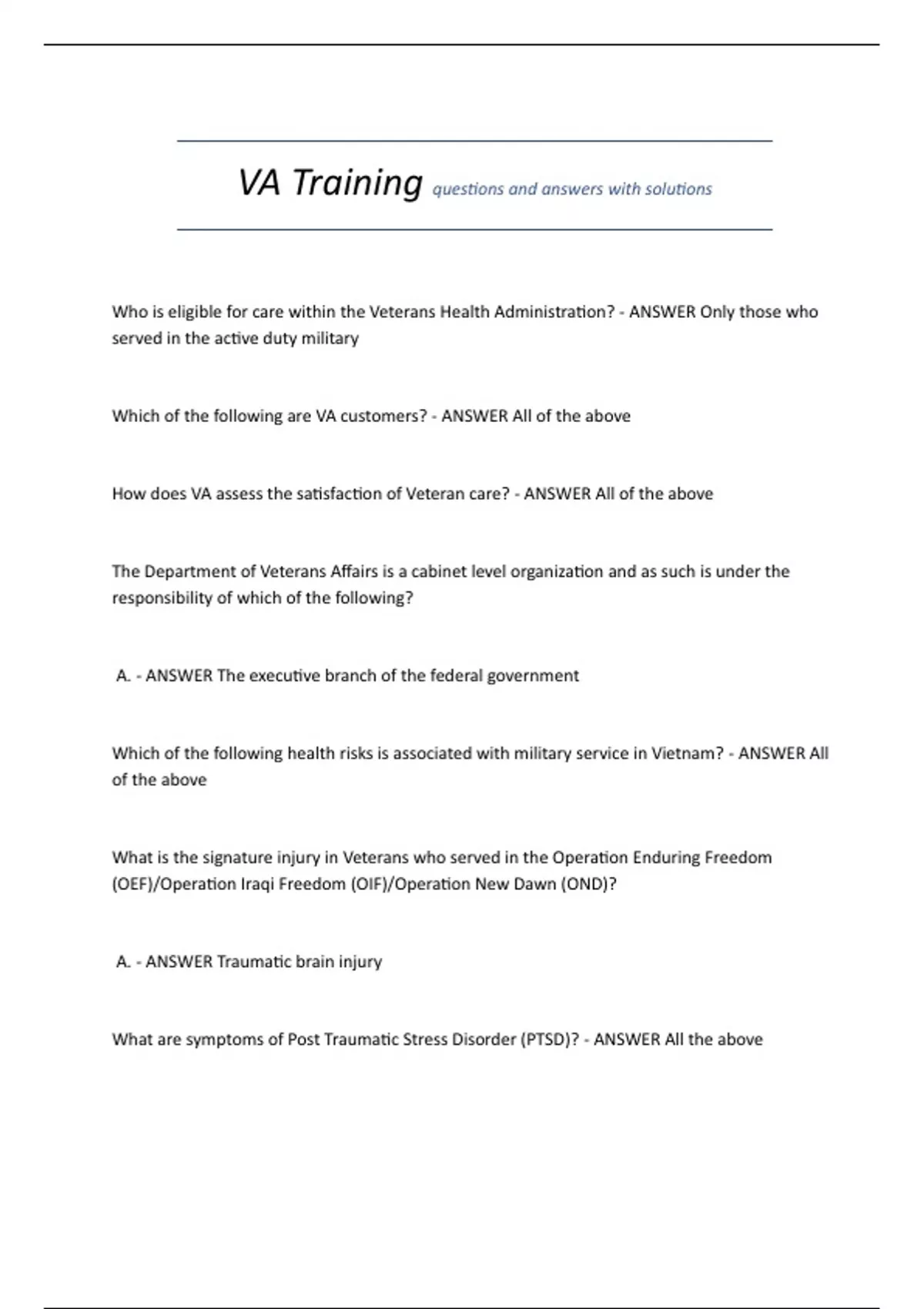 Which of the following are VA customers? - ANSWER All of the above