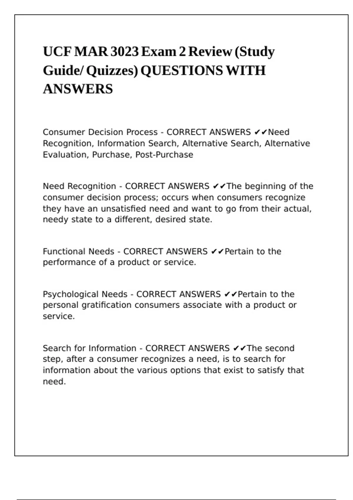 UCF MAR 3023 Exam 2 Review (Study Guide Quizzes) QUESTIONS WITH ANSWERS