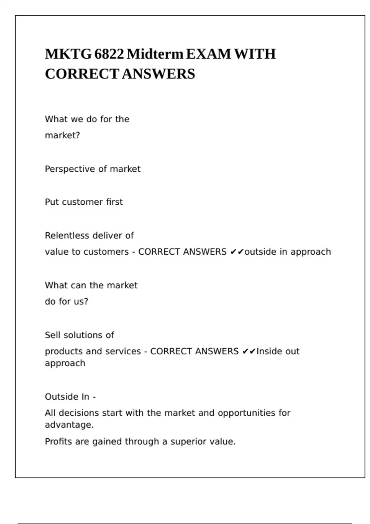 ANSWERS ✔✔Customer Value \| \|
