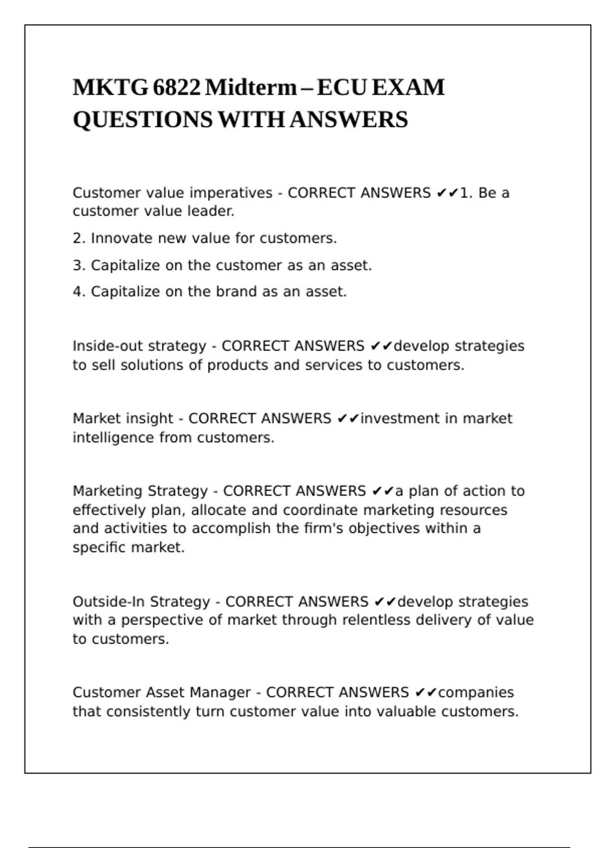 MKTG 6822 Midterm – ECU EXAM QUESTIONS WITH ANSWERS
