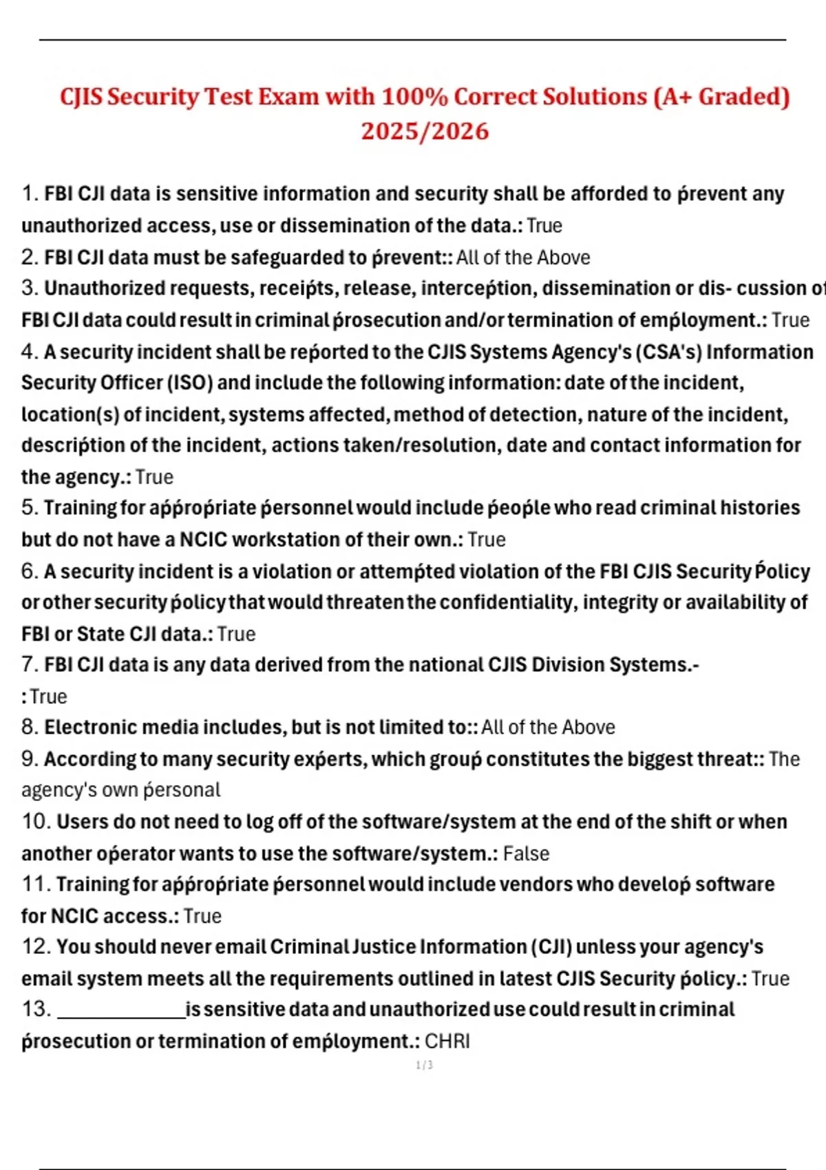 1. FBI CJI data is sensitive information and security shall be afforded to ṕrevent any
