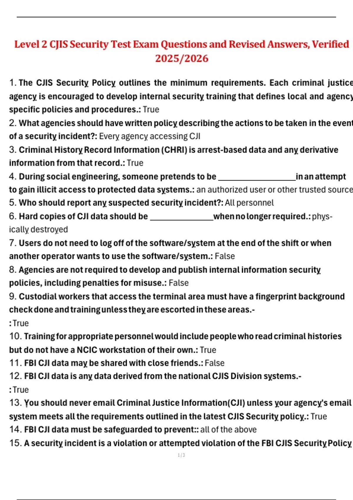 1. The CJIS Securitỵ Policỵ outlines the minimum requirements. Each criminal justice