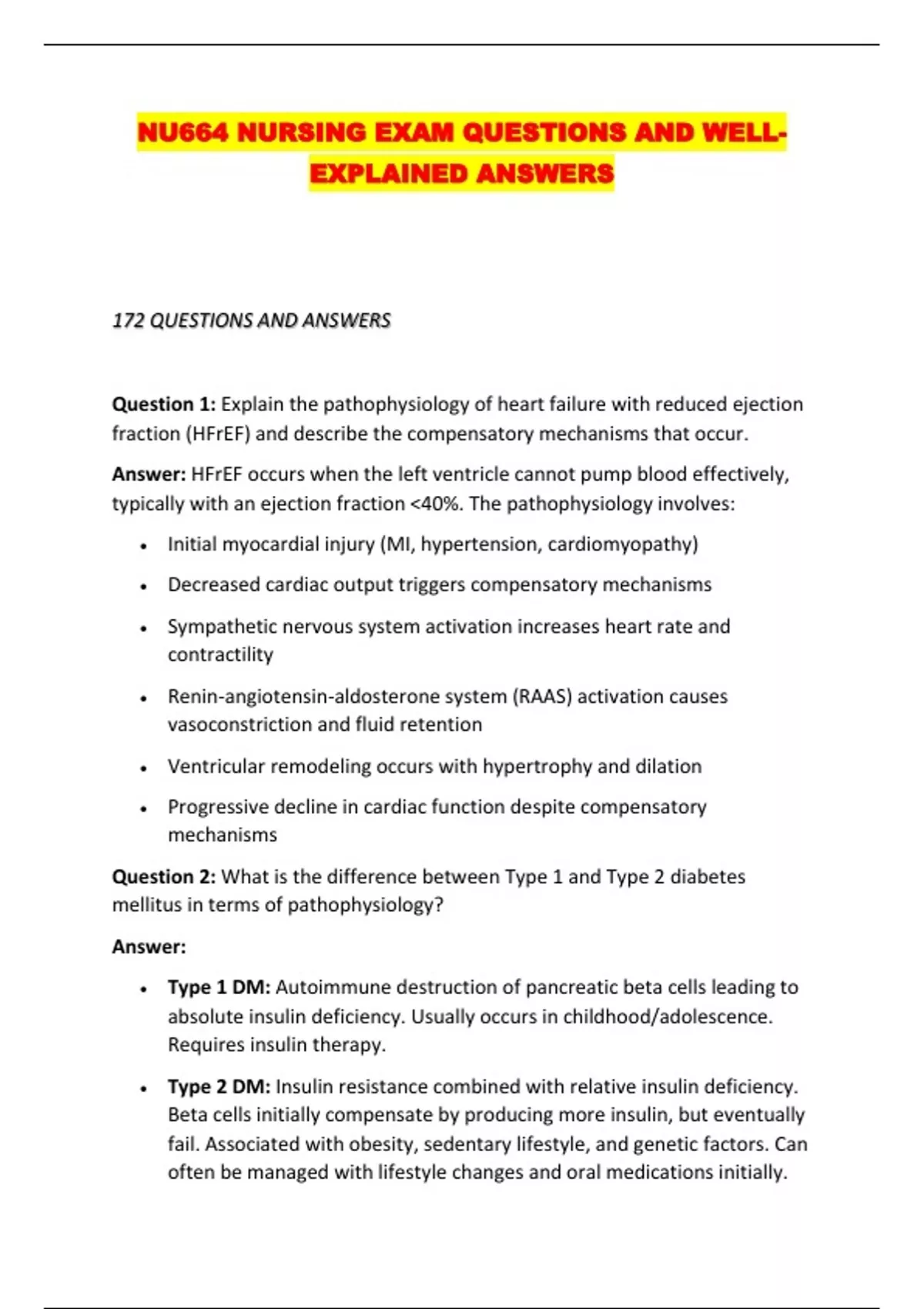 NU664 NURSING EXAM QUESTIONS AND WELL-EXPLAINED ANSWERS