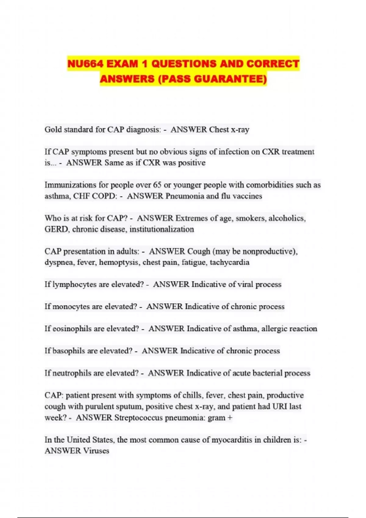 NU664 EXAM 1 QUESTIONS AND CORRECT ANSWERS (PASS GUARANTEE)