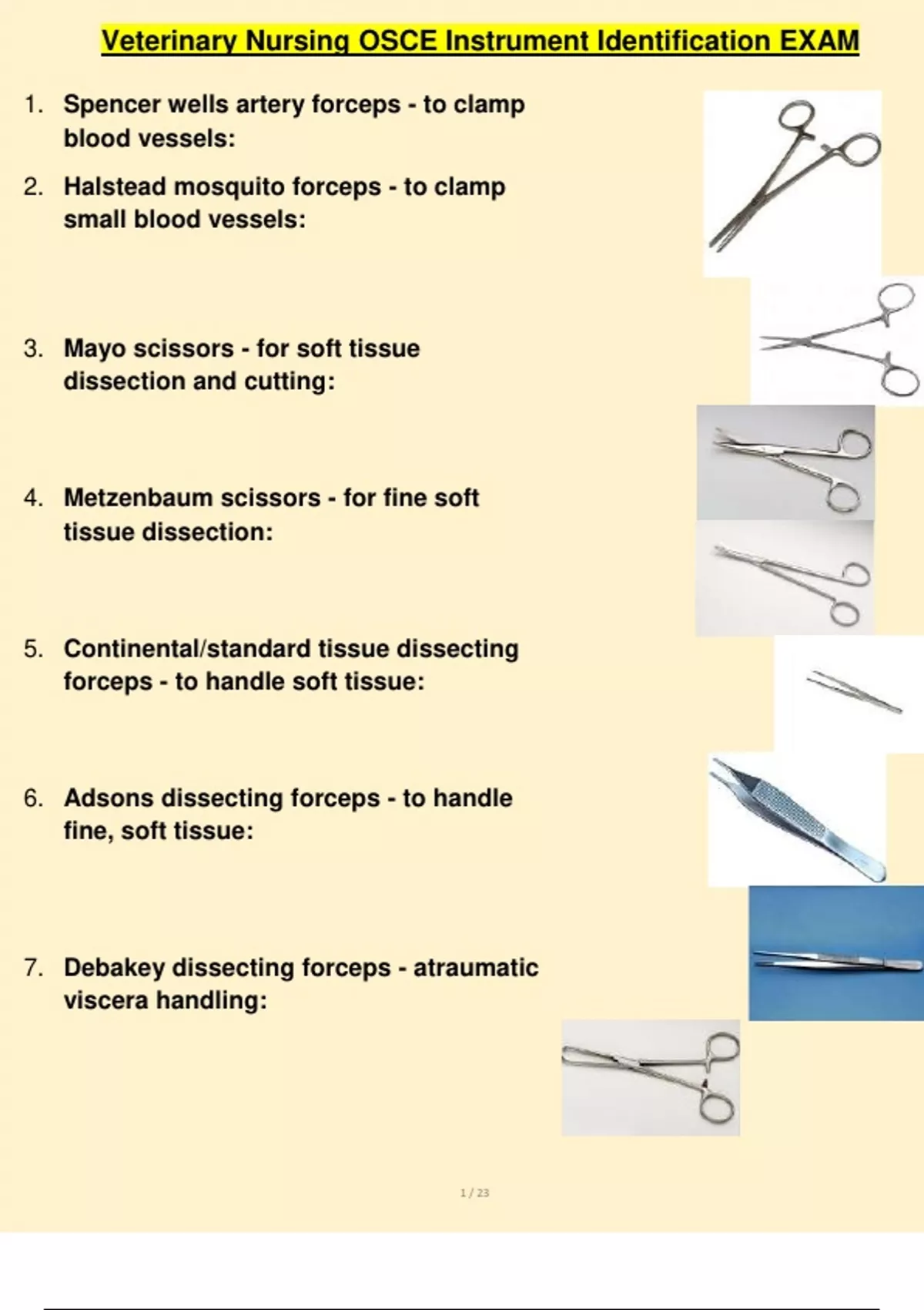 , Veterinary Nursing OSCE Instrument Identification EXAM
