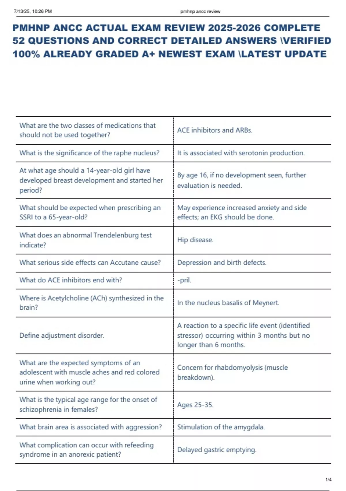 PMHNP ANCC ACTUAL EXAM REVIEW 2025-2026 COMPLETE