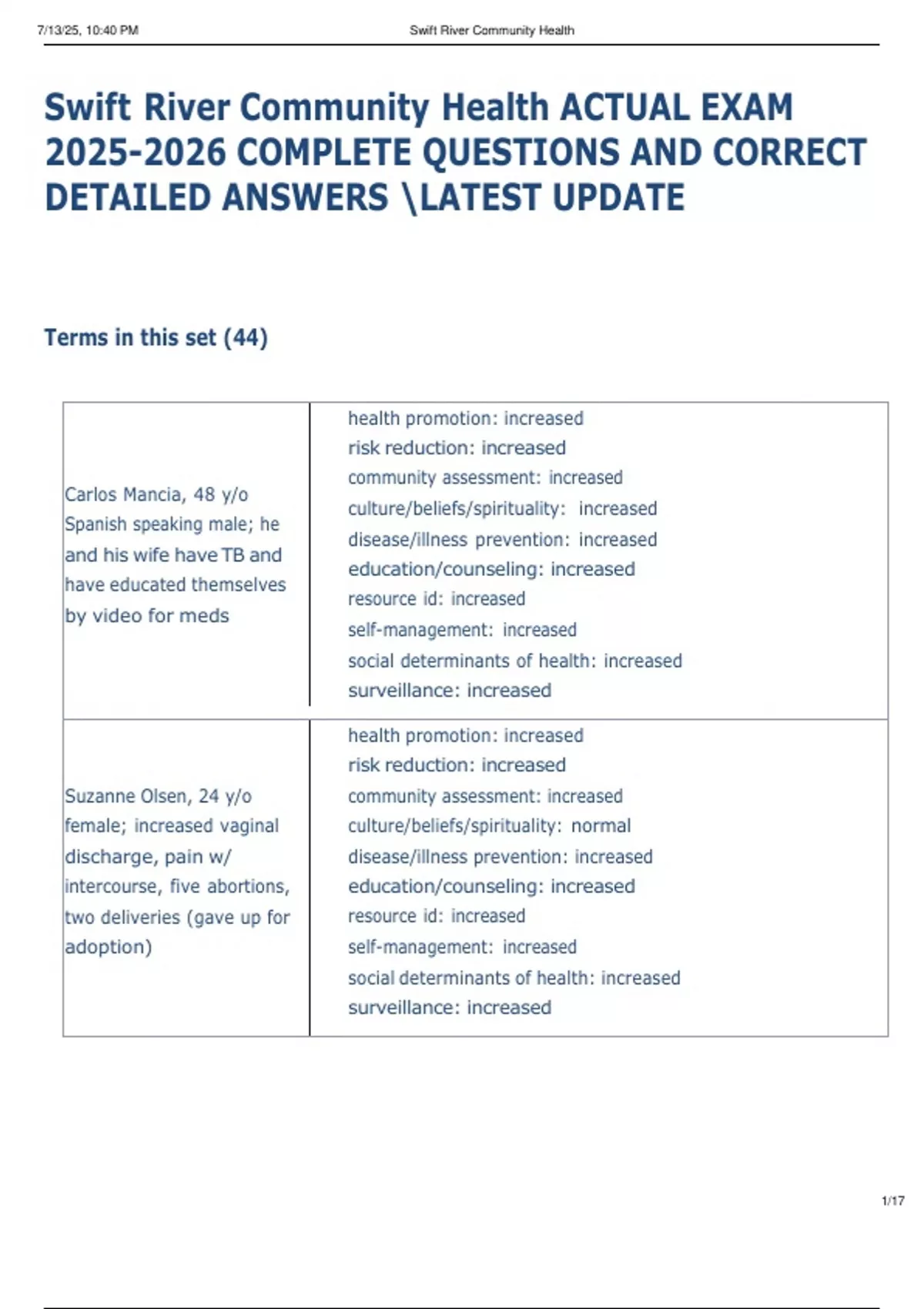 Swift River Community Health ACTUAL EXAM COMPLETE QUESTIONS AND CORRECT DETAILED ANSWERS LATEST UPDATE Swift River Community Health ACTUAL EXAM COMPLETE QUESTIONS AND CORRECT DETAILED ANSWERS LATEST UPDATE Swift River Community Health ACTUAL EXAM COMPLETE QUESTIONS AND CORRECT DETAILED ANSWERS LATEST UPDATE Swift River Community Health ACTUAL EXAM COMPLETE QUESTIONS AND CORRECT DETAILED ANSWERS LATEST UPDATE Swift River Community Health ACTUAL EXAM COMPLETE QUESTIONS AND CORRECT DETAILED ANSWERS LATEST UPDATE Swift River Community Health ACTUAL EXAM COMPLETE QUESTIONS AND CORRECT DETAILED ANSWERS LATEST UPDATE Swift River Community Health ACTUAL EXAM COMPLETE QUESTIONS AND CORRECT DETAILED ANSWERS LATEST UPDATE Swift River Community Health ACTUAL EXAM COMPLETE QUESTIONS AND CORRECT DETAILED ANSWERS LATEST UPDATE Swift River Community Health ACTUAL EXAM COMPLETE QUESTIONS AND CORRECT DETAILED ANSWERS LATEST UPDATE Swift River Community Health ACTUAL EXAM COMPLETE QUESTIONS AND CORRECT DETAILED ANSWERS LATEST UPDATE Swift River Community Health ACTUAL EXAM COMPLETE QUESTIONS AND CORRECT DETAILED ANSWERS LATEST UPDATE Swift River Community Health ACTUAL EXAM COMPLETE QUESTIONS AND CORRECT DETAILED ANSWERS LATEST UPDATE