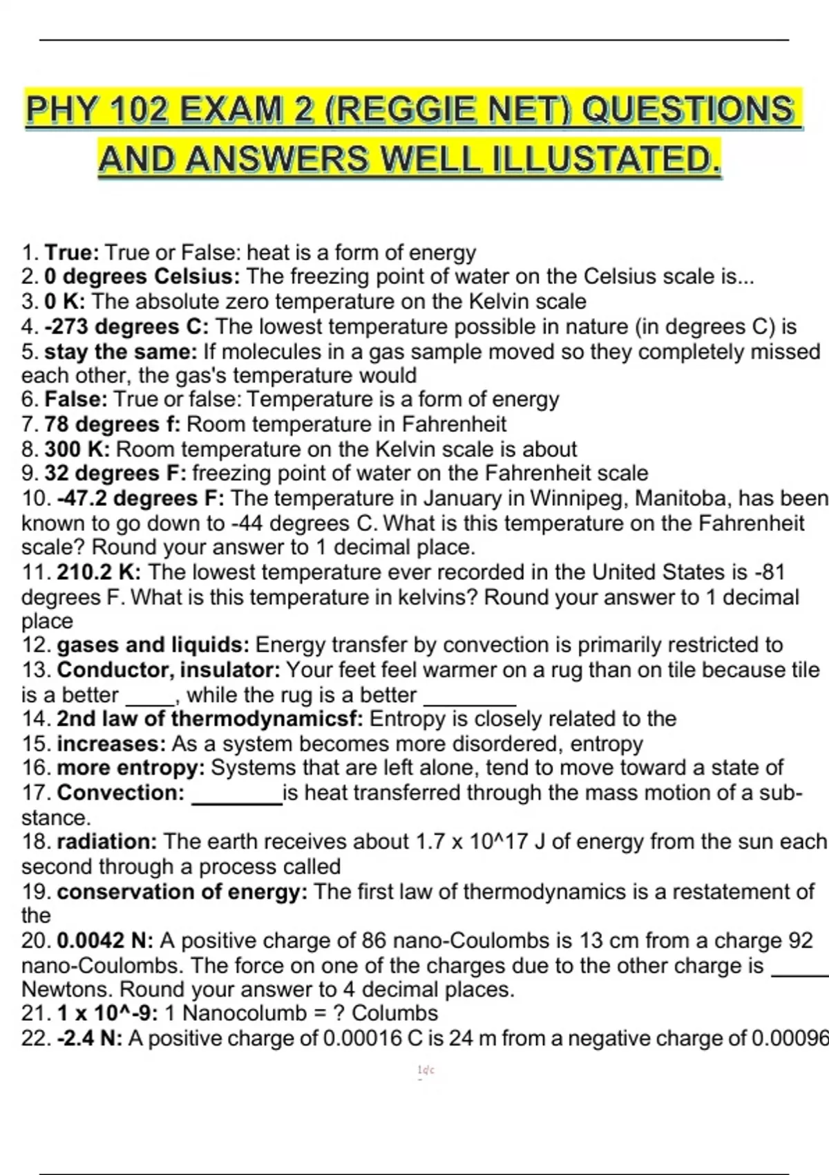 1. True: True or False: heat is a form of energy