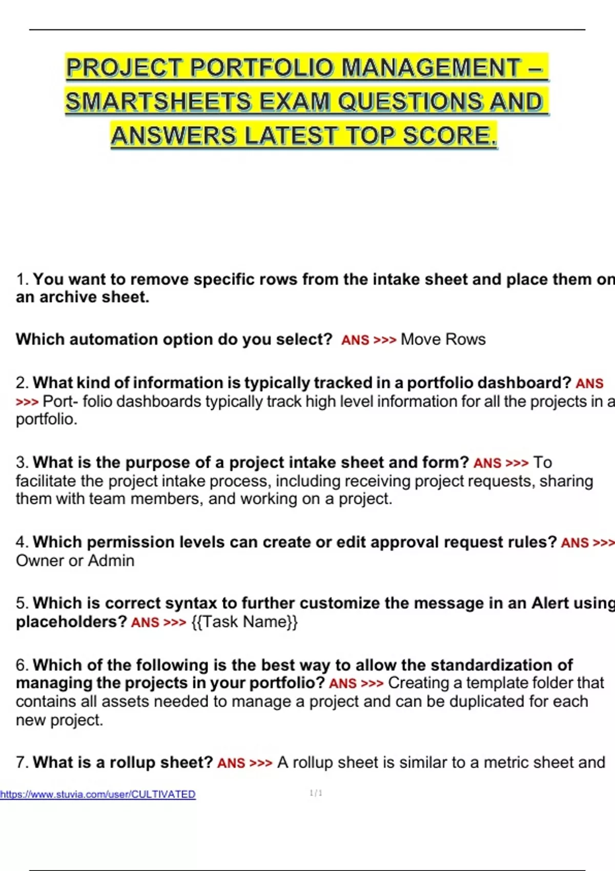 SMARTSHEETS EXAM QUESTIONS AND