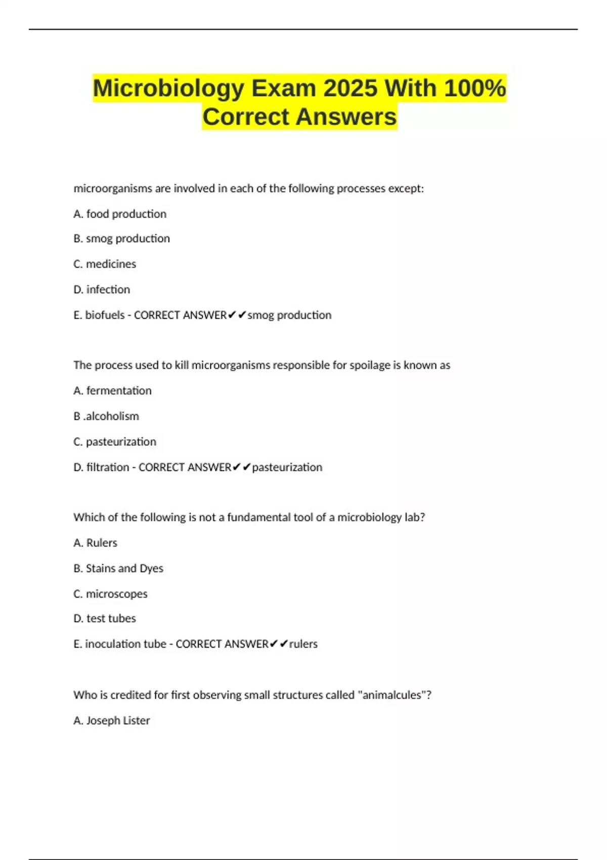 D. filtration - CORRECT ANSWER✔✔pasteurization