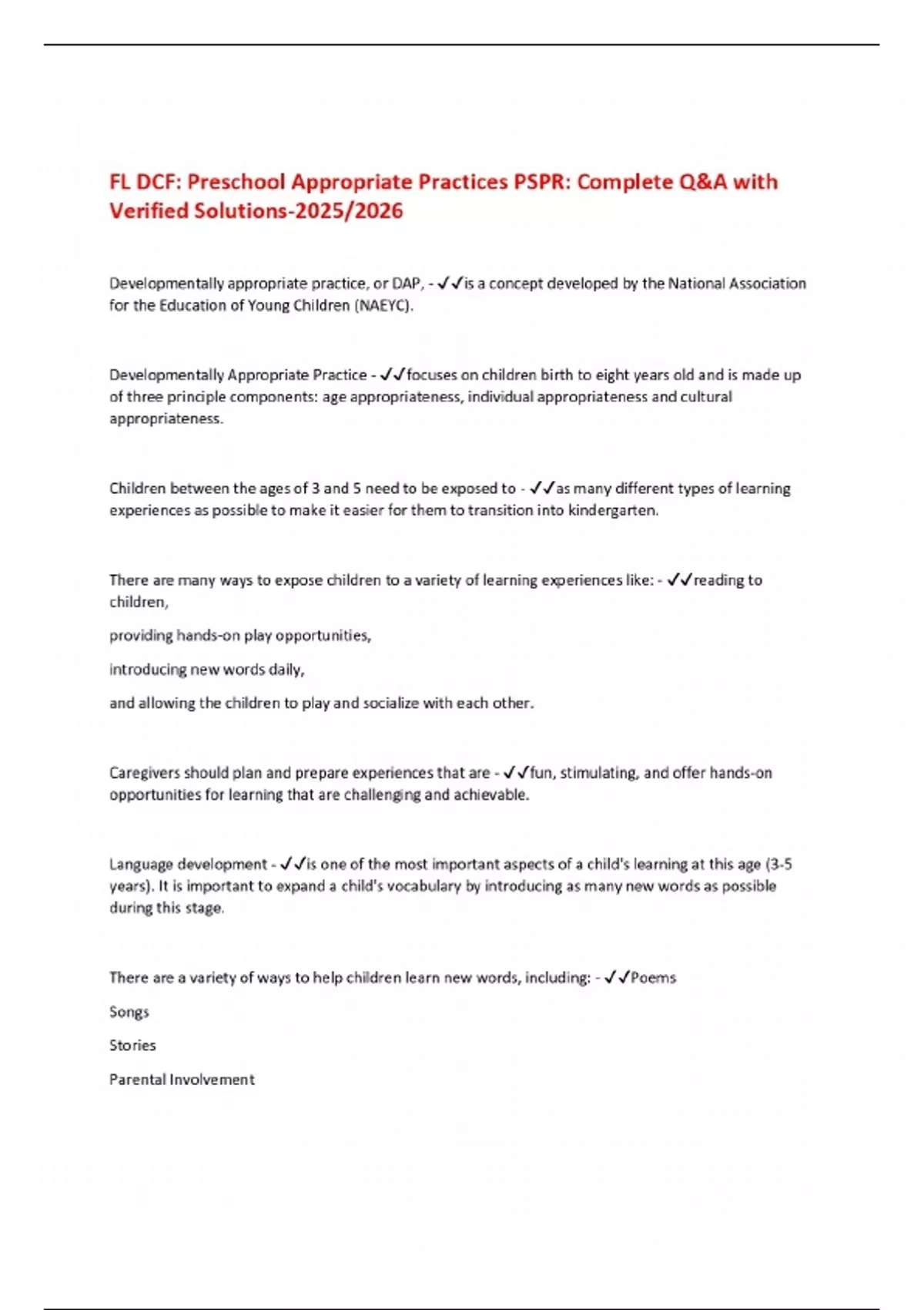 FL DCF: Preschool Appropriate Practices PSPR: Complete Q&A with Verified Solutions-2025/2026