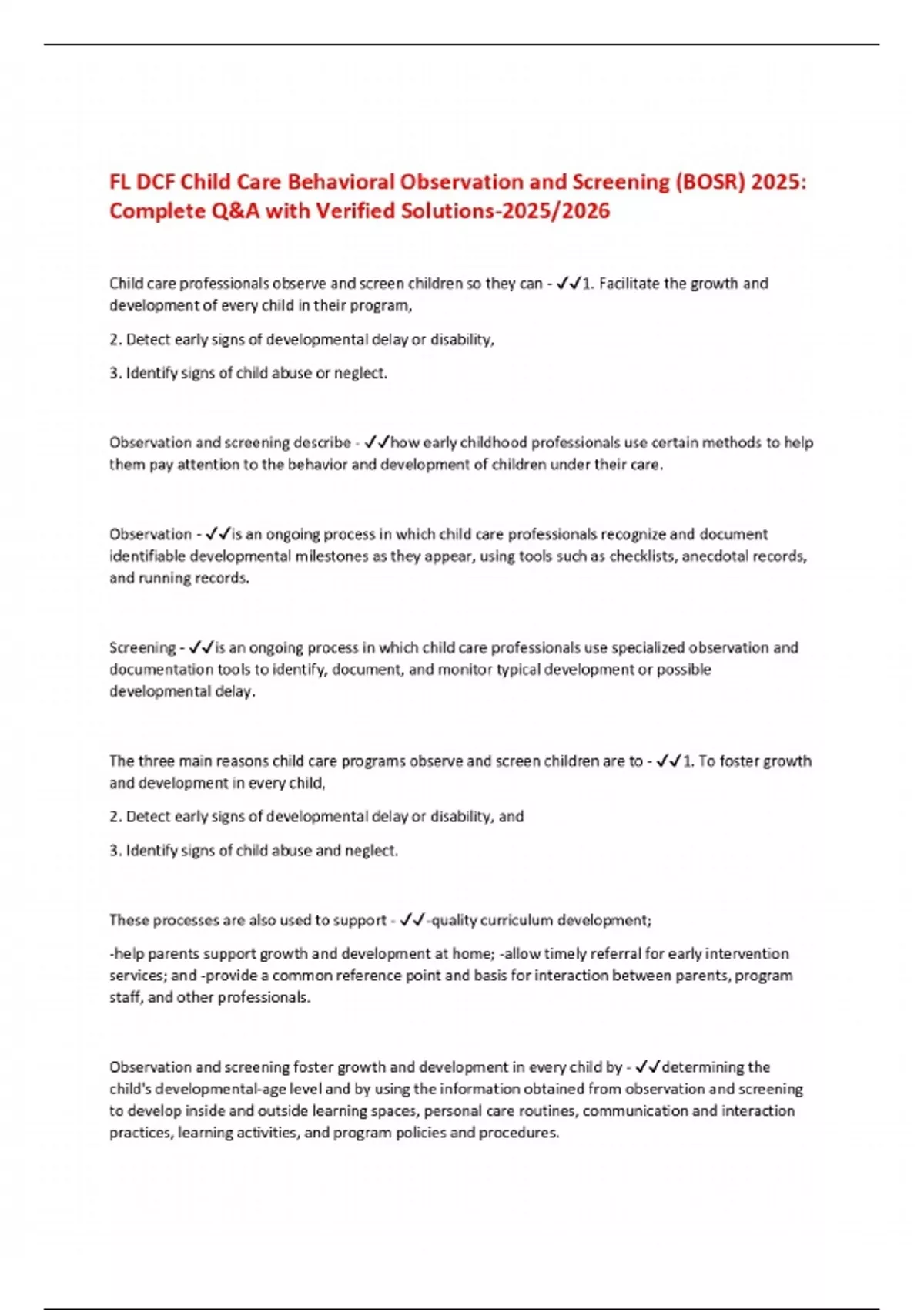 FL DCF Child Care Behavioral Observation and Screening (BOSR) 2025: Complete Q&A with Verified Solutions-2025/2026