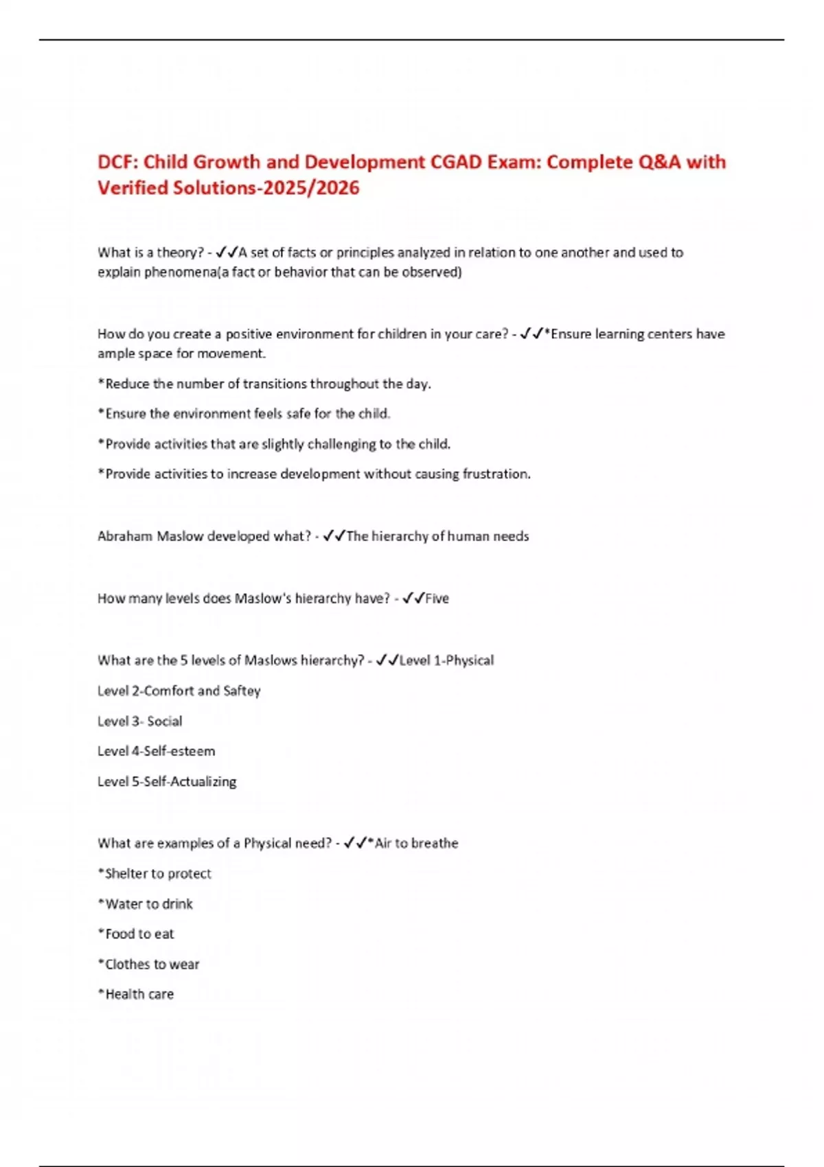 DCF: Child Growth and Development CGAD Exam: Complete Q&A with Verified Solutions-2025/2026
