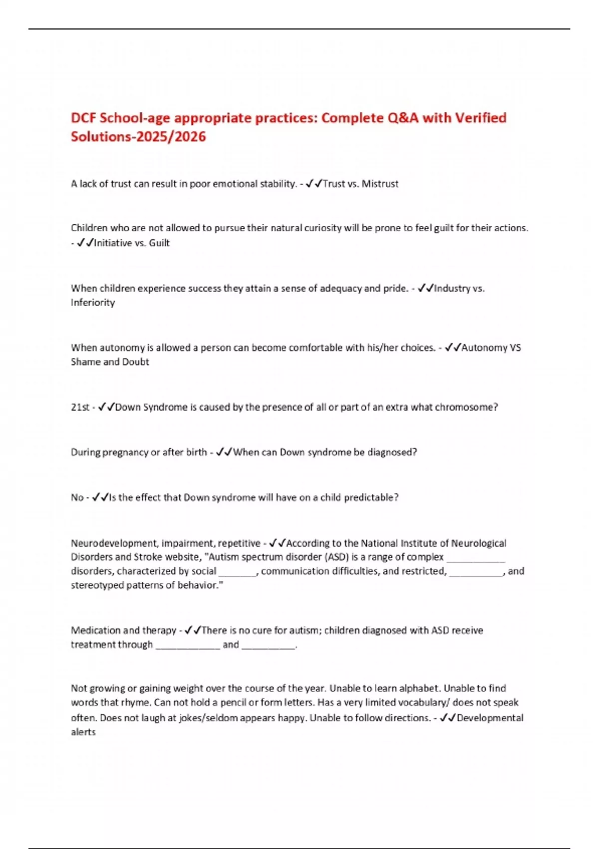 DCF School-age appropriate practices: Complete Q&A with Verified Solutions-2025/2026