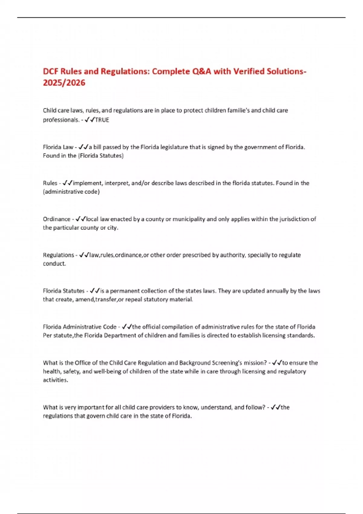 DCF Rules and Regulations: Complete Q&A with Verified Solutions 2025/2026