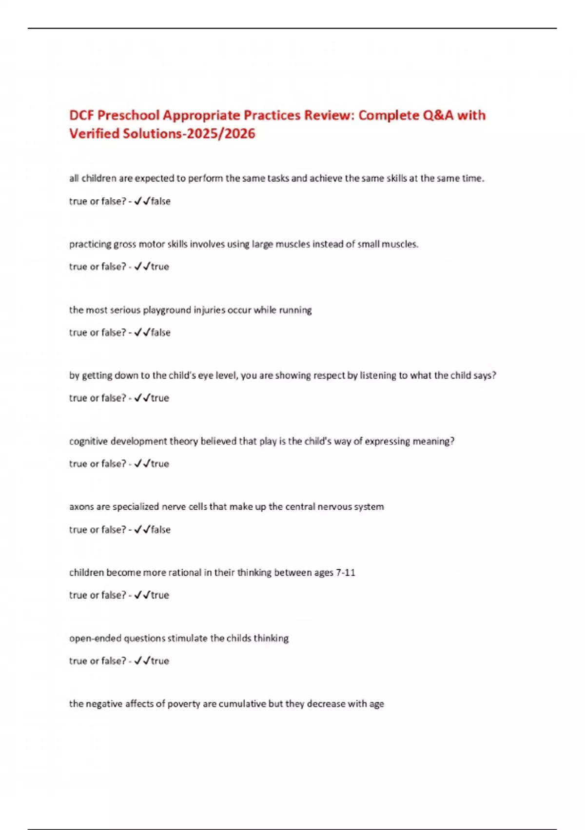 DCF Preschool Appropriate Practices Review: Complete Q&A with Verified Solutions-2025/2026