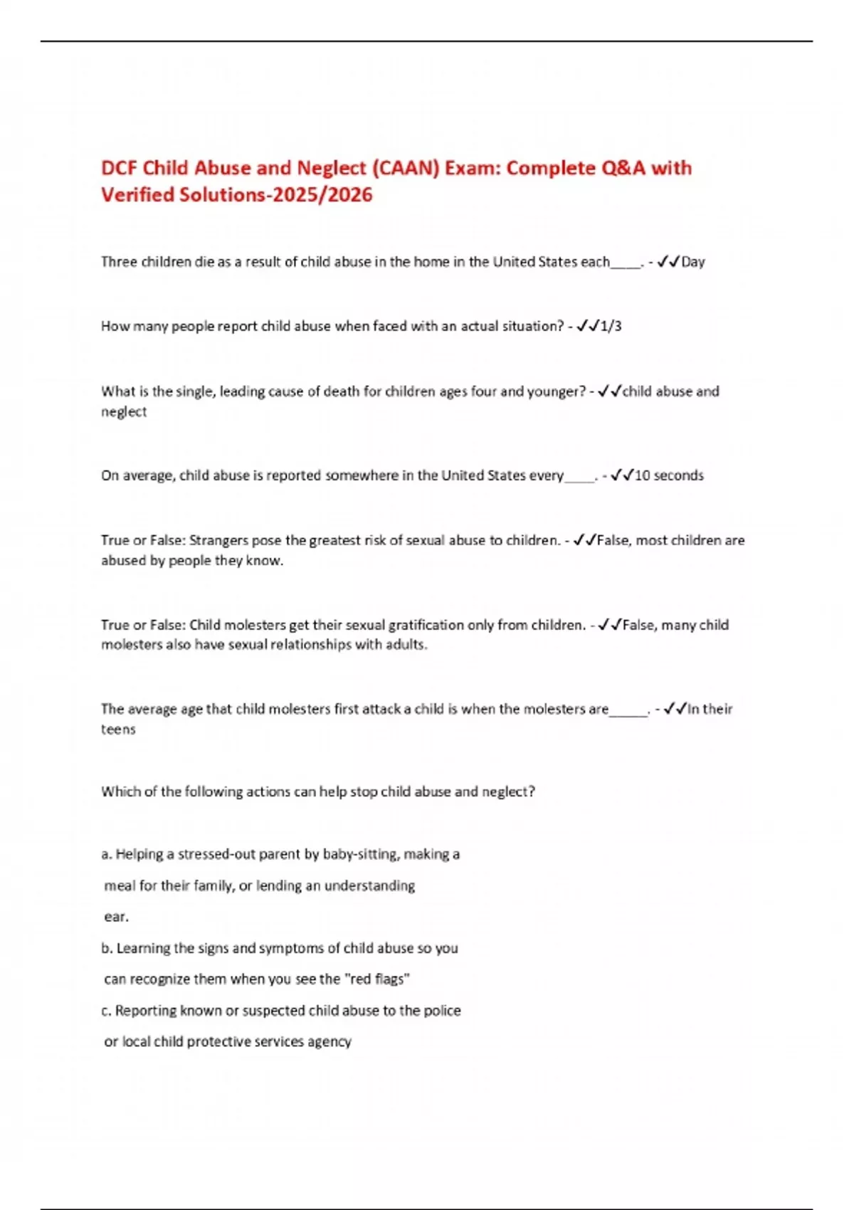 DCF Child Abuse and Neglect (CAAN) Exam: Complete Q&A with Verified Solutions-2025/2026