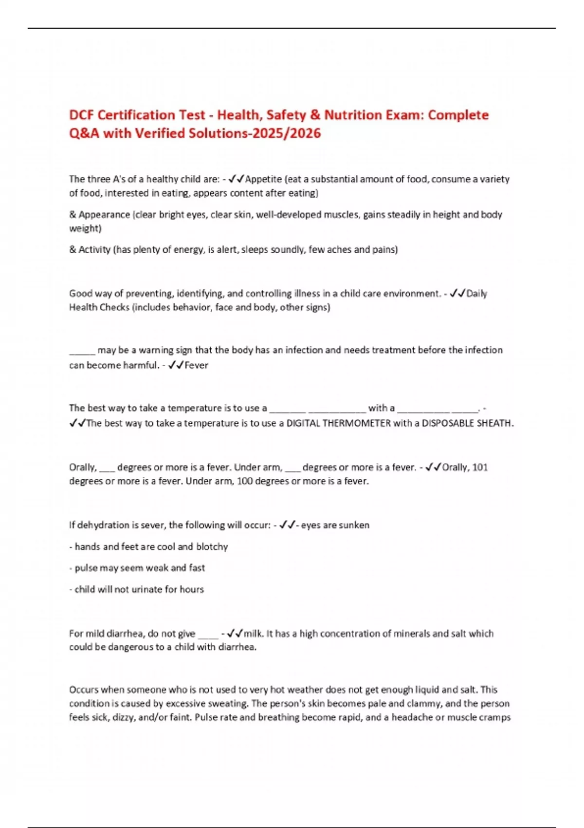 DCF Certification Test - Health, Safety & Nutrition Exam: Complete Q&A with Verified Solutions-2025/2026