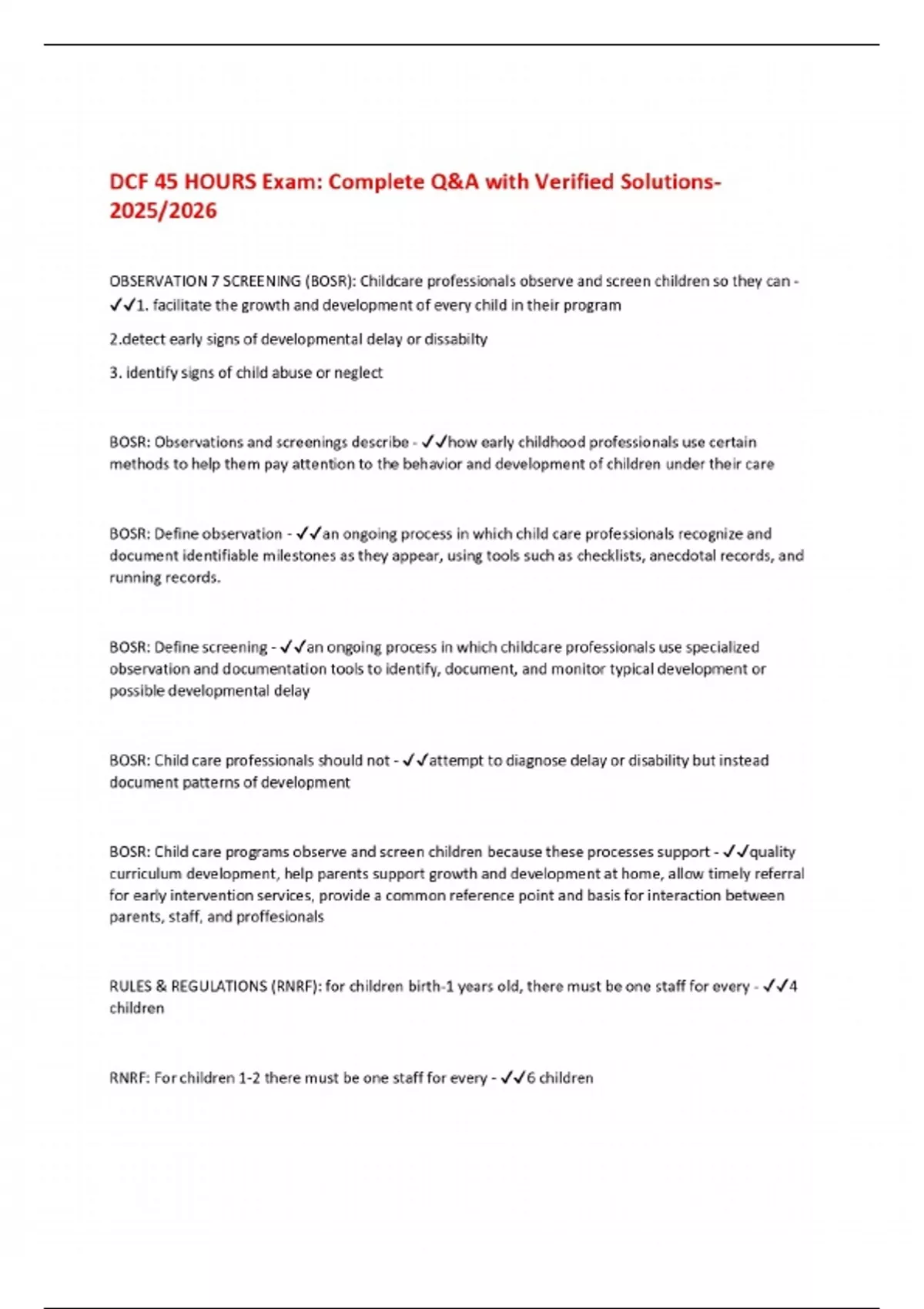 DCF 45 HOURS Exam: Complete Q&A with Verified Solutions 2025/2026