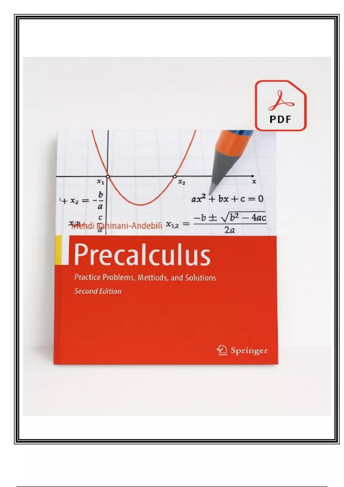 INSTANT DOWNLOAD PDF — This comprehensive Precalculus: Practice Problems, Methods, and Solutions* (2nd Edition, 2024) by Mehdi Rahmani-Andebili offers step-by-step solutions to a wide range of algebra, trigonometry, functions, and graphing problems. Designed for high school and college students, this resource is ideal for building a strong foundation in precalculus through clear methods and fully worked-out solutions. precalculus solutions manual, rahmani-andebili 2nd edition answers, algebra and trigonometry problems, precalculus practice problems, graphing functions step-by-step, trig identities exercises, math prep book solutions, high school math guide, college precalculus help, precalculus methods and solutions #Precalculus, #MathSolutions, #RahmaniAndebili, #TrigonometryHelp, #AlgebraPractice, #MathTextbook, #STEMEducation, #PrecalculusGuide, #MathStudents, #CollegeMath