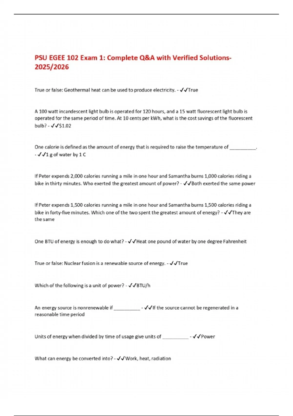 PSU EGEE 102 Exam 1: Complete Q&A with Verified Solutions 2025/2026