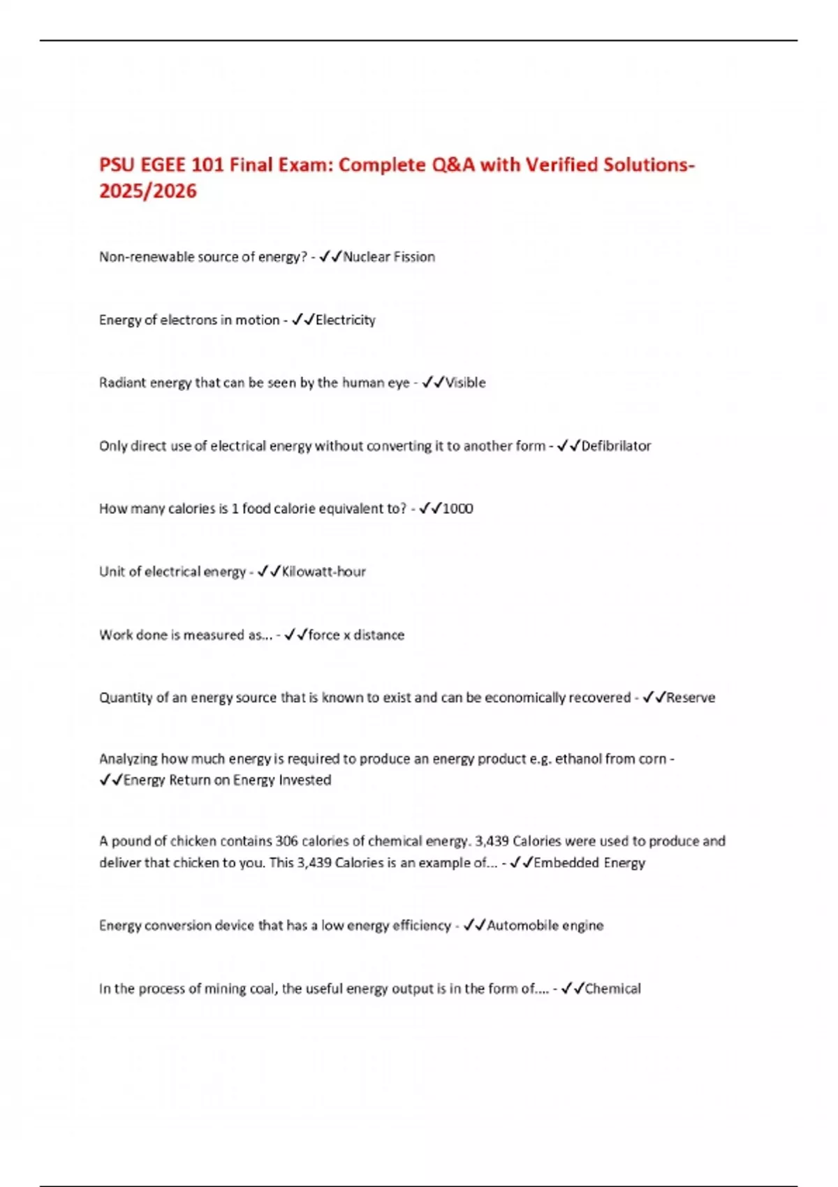 PSU EGEE 101 Final Exam: Complete Q&A with Verified Solutions 2025/2026