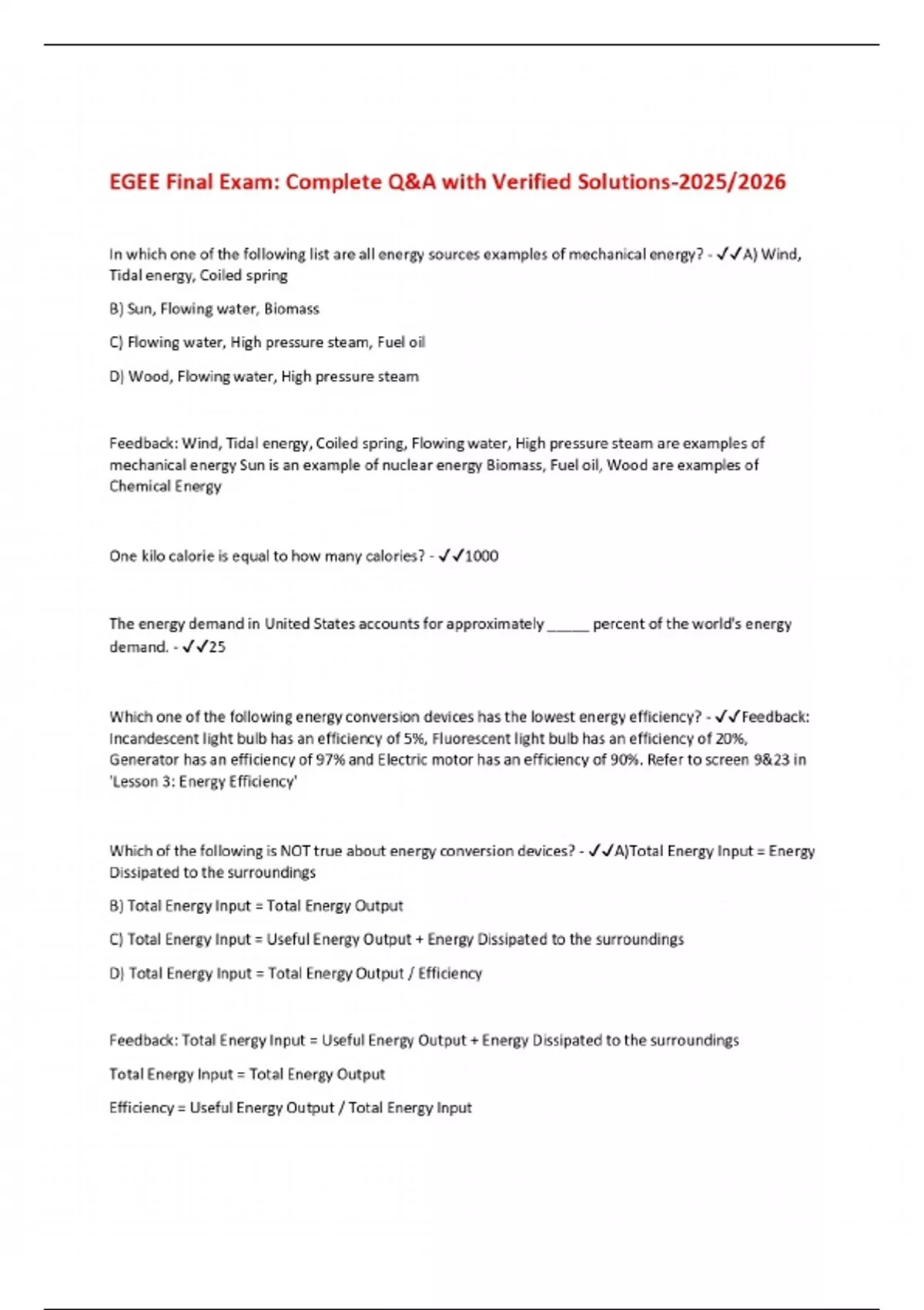 EGEE Final Exam: Complete Q&A with Verified Solutions-2025/2026