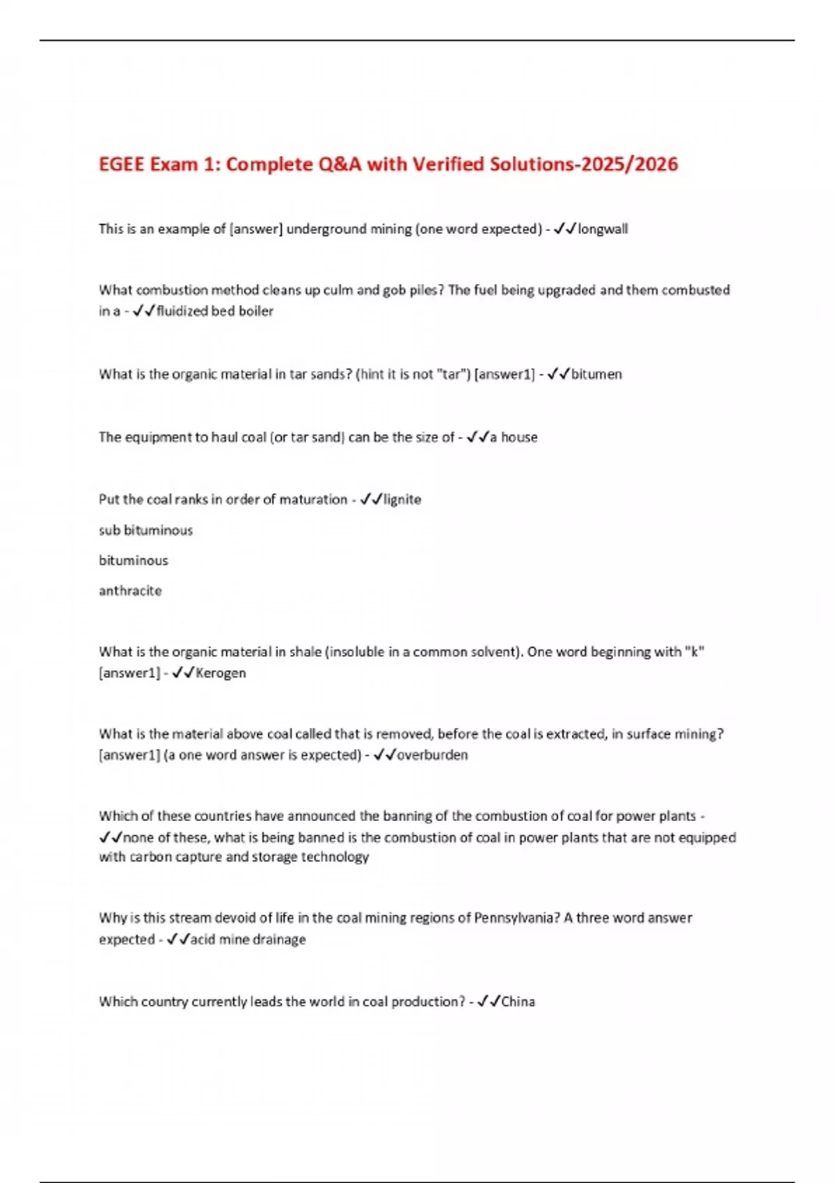 EGEE Exam 1: Complete Q&A with Verified Solutions-2025/2026