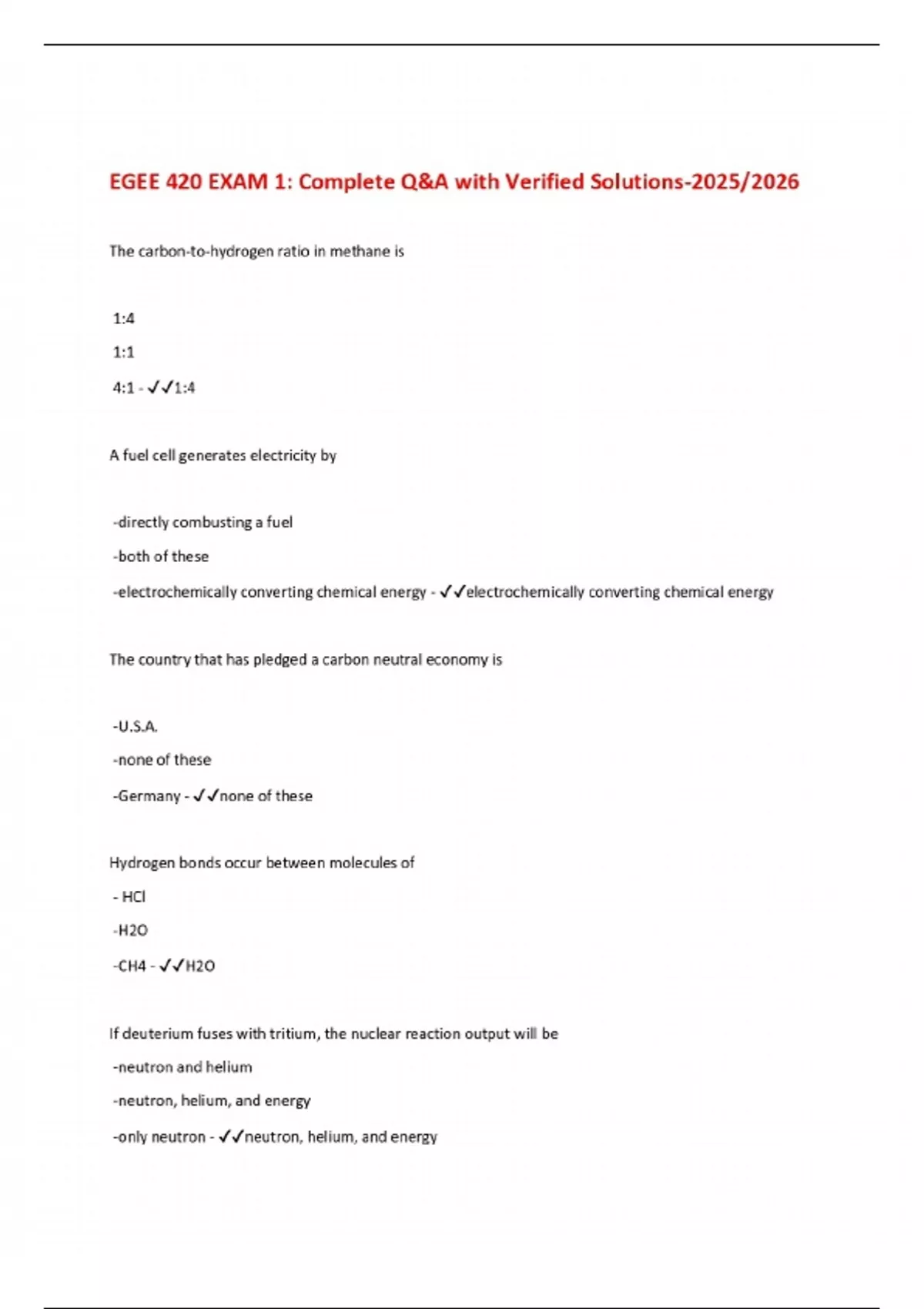 EGEE 420 EXAM 1: Complete Q&A with Verified Solutions-2025/2026