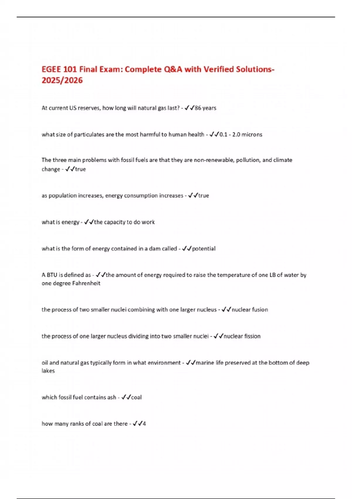 EGEE 101 Final Exam: Complete Q&A with Verified Solutions 2025/2026