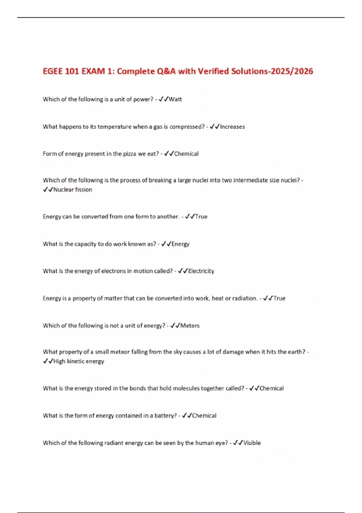 EGEE 101 EXAM 1: Complete Q&A with Verified Solutions-2025/2026