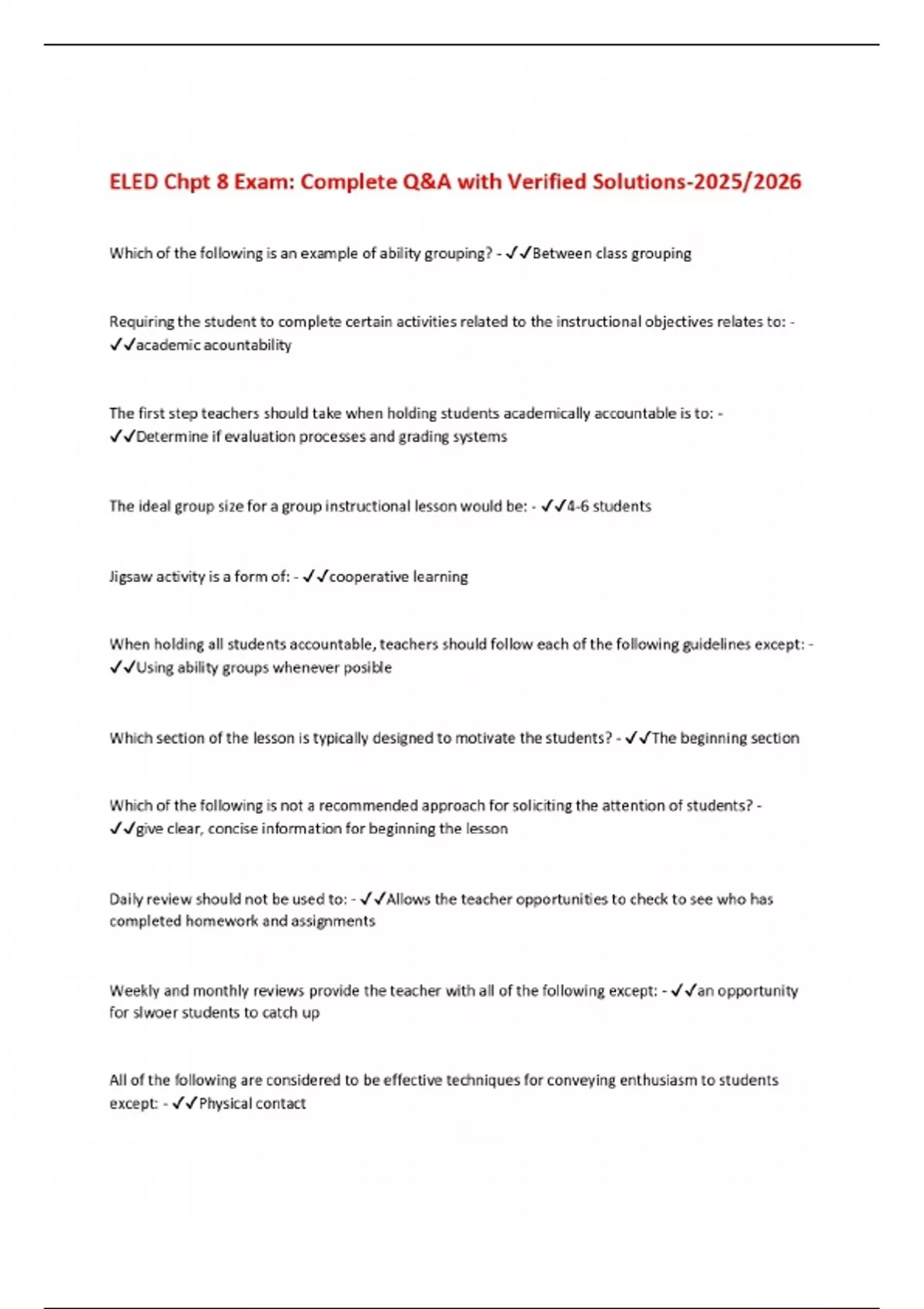 ELED Chpt 8 Exam: Complete Q&A with Verified Solutions-2025/2026