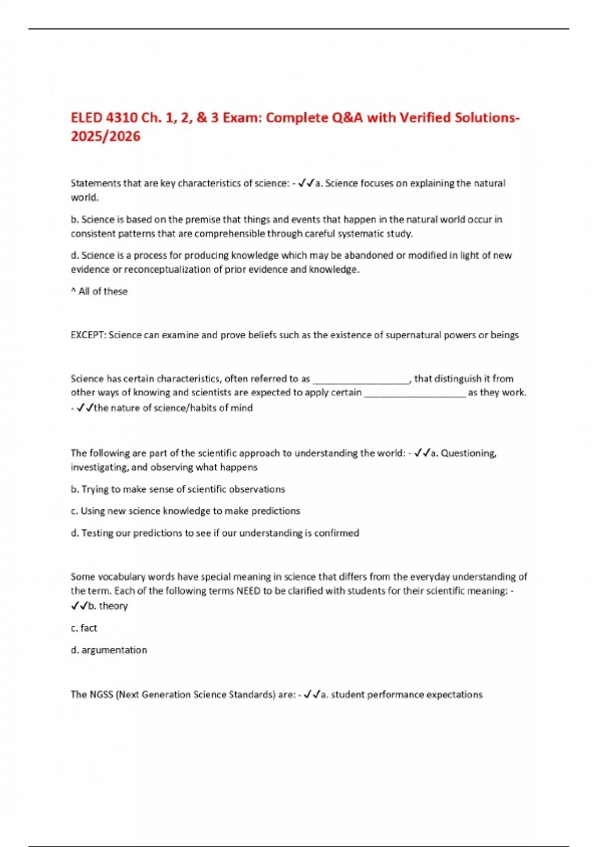 ELED 4310 Ch. 1, 2, & 3 Exam: Complete Q&A with Verified Solutions 2025/2026
