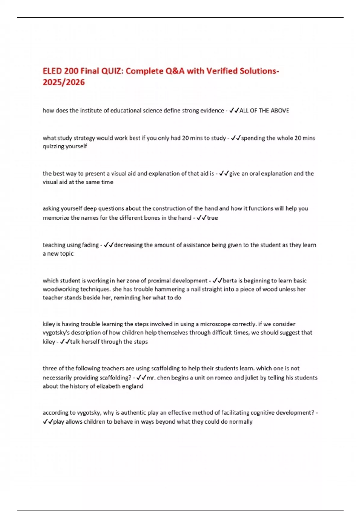 ELED 200 Final QUIZ: Complete Q&A with Verified Solutions 2025/2026