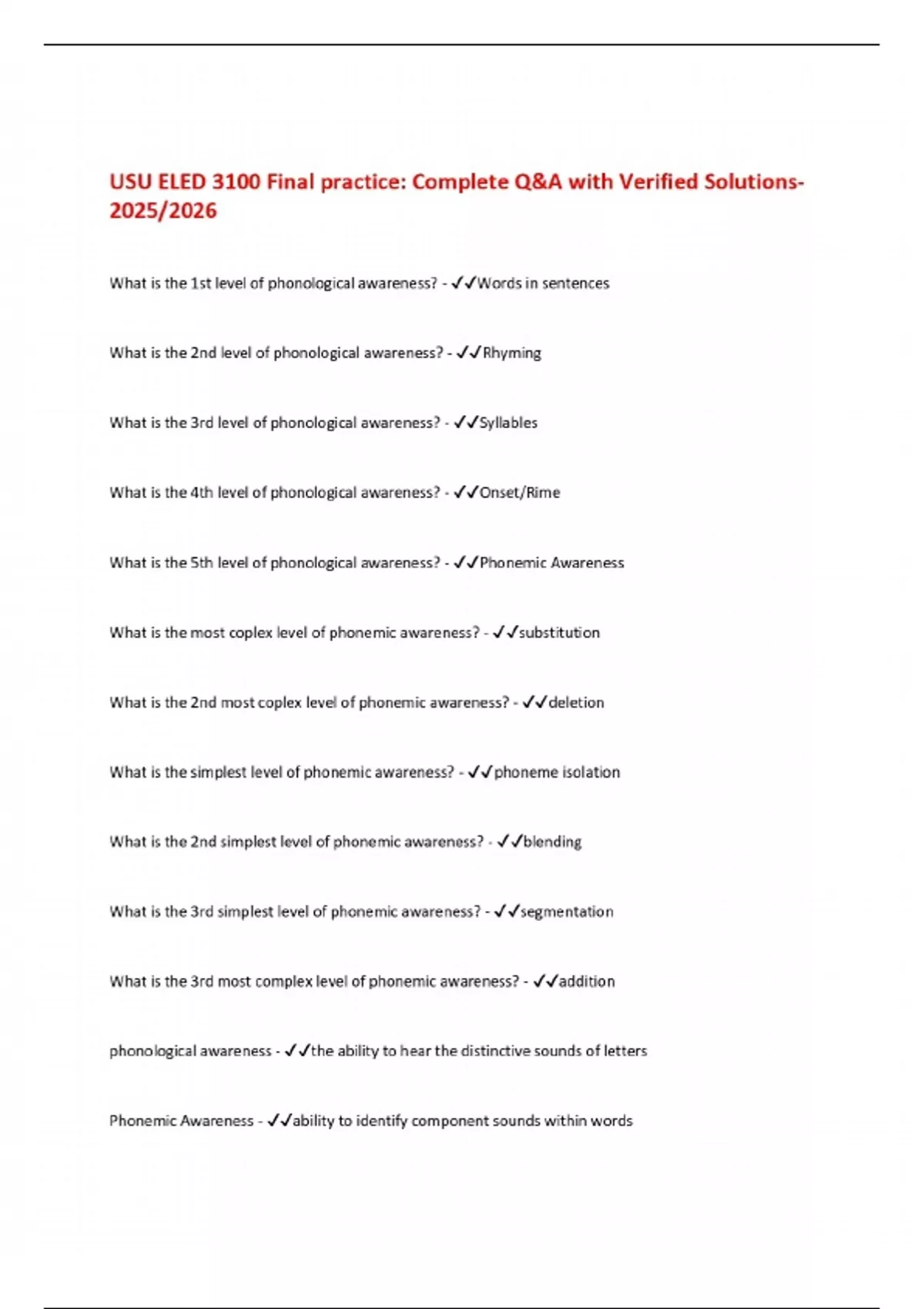 USU ELED 3100 Final practice: Complete Q&A with Verified Solutions 2025/2026