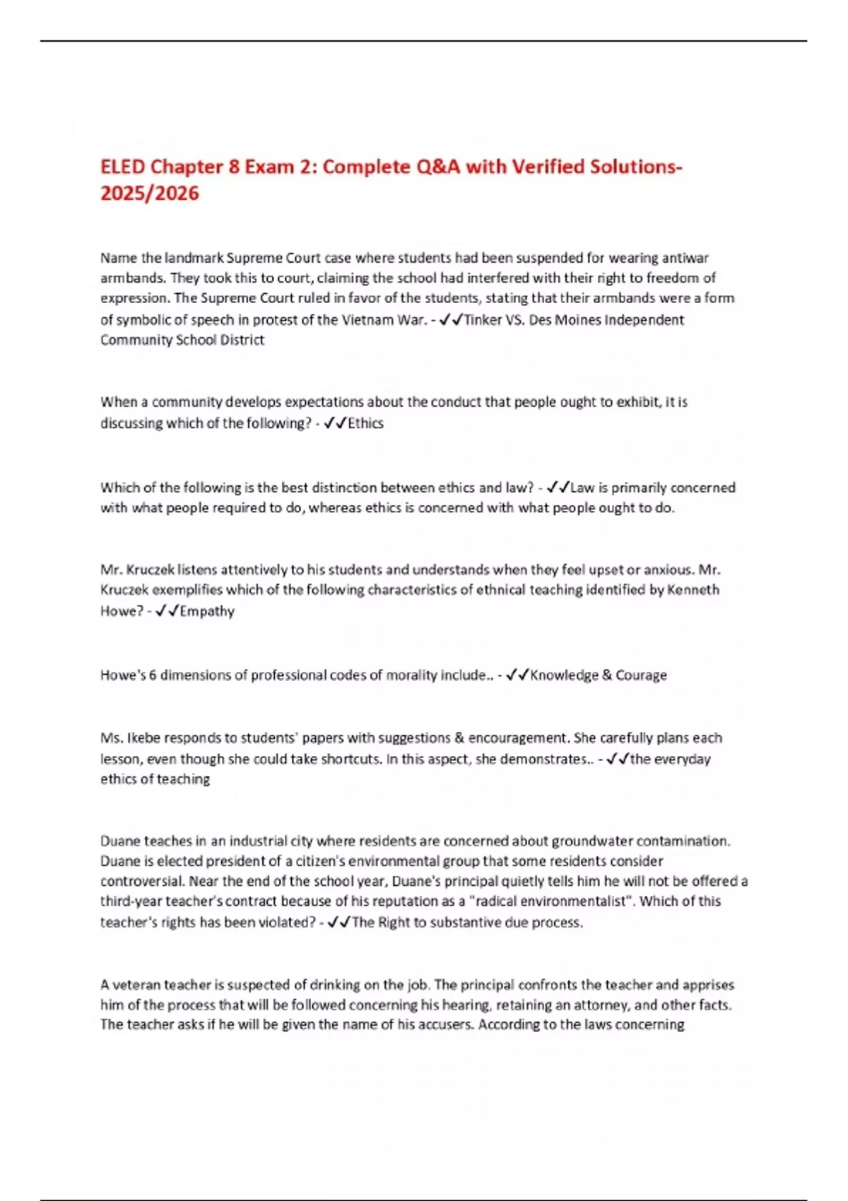 ELED Chapter 8 Exam 2: Complete Q&A with Verified Solutions 2025/2026