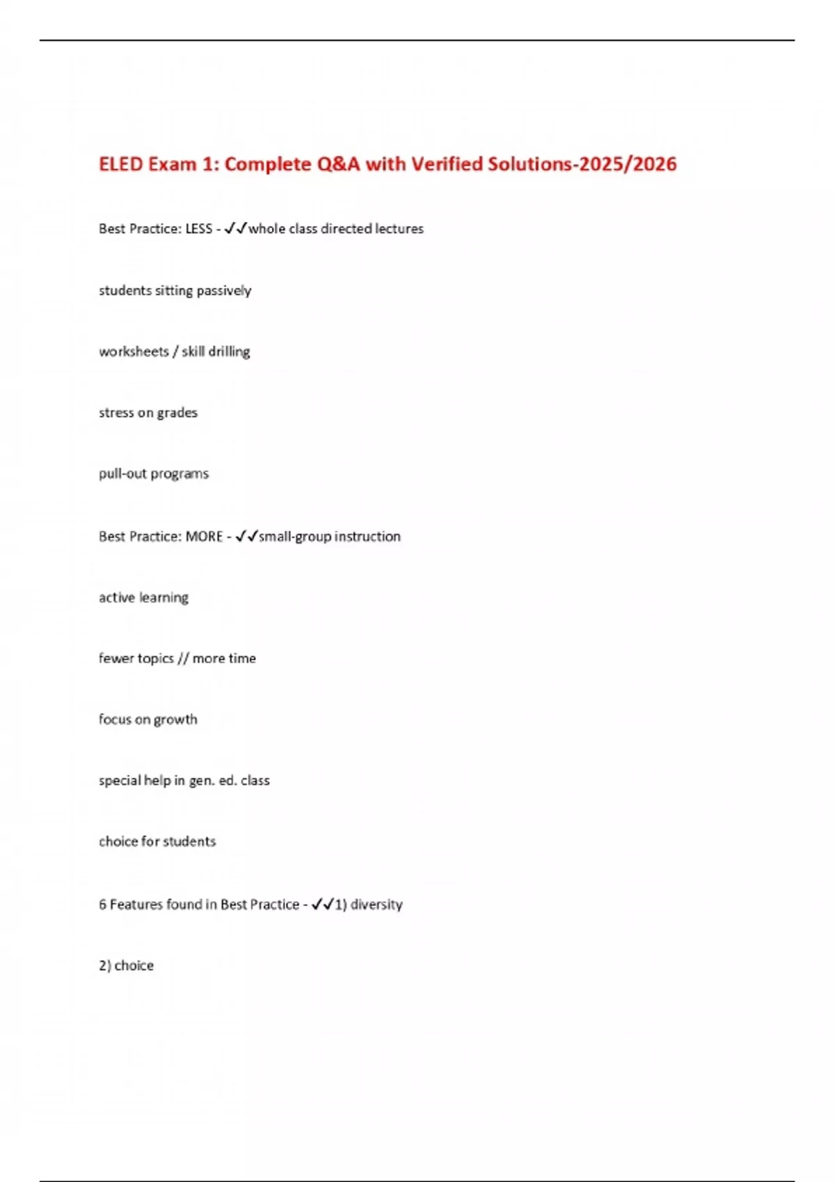ELED Exam 1: Complete Q&A with Verified Solutions-2025/2026
