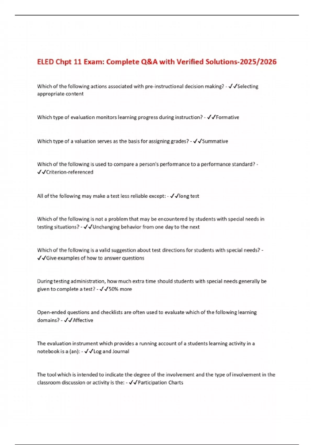 ELED Chpt 11 Exam: Complete Q&A with Verified Solutions-2025/2026